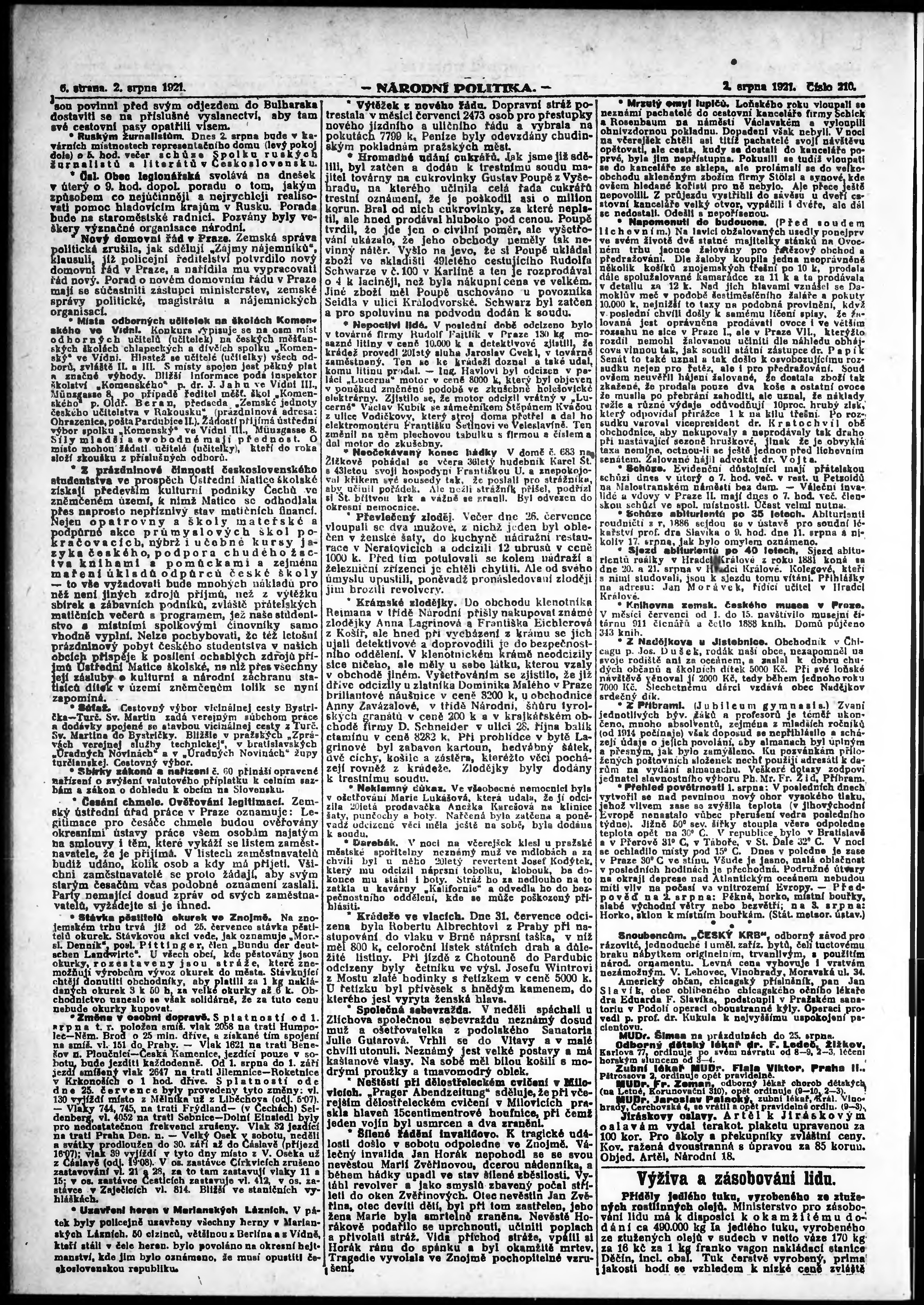 ranní vydání; vydání pro Prahu;