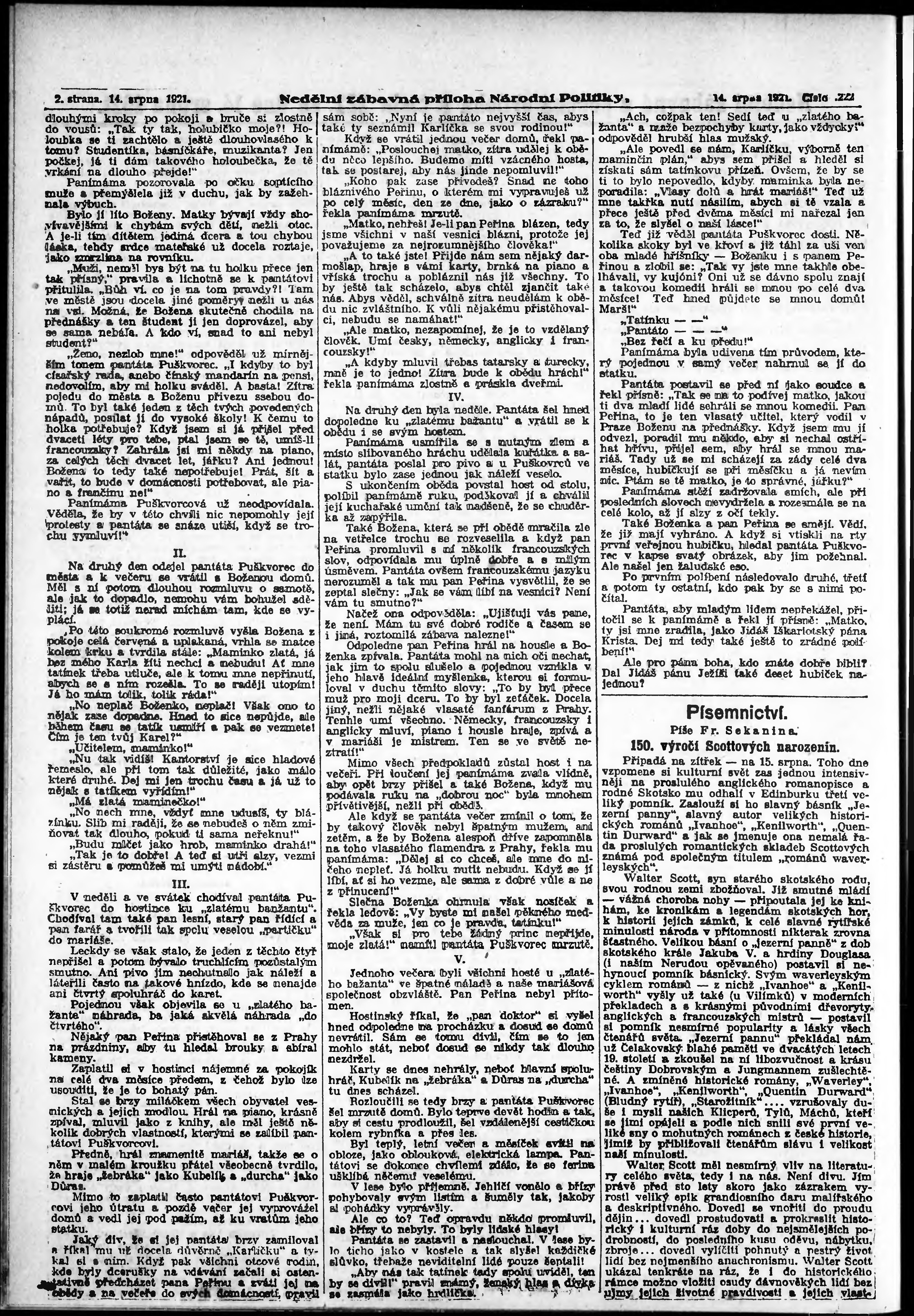 * Datum vydání výtisku: 14.8.1921 Číslo výtisku: 222 Typ výtisku: příloha