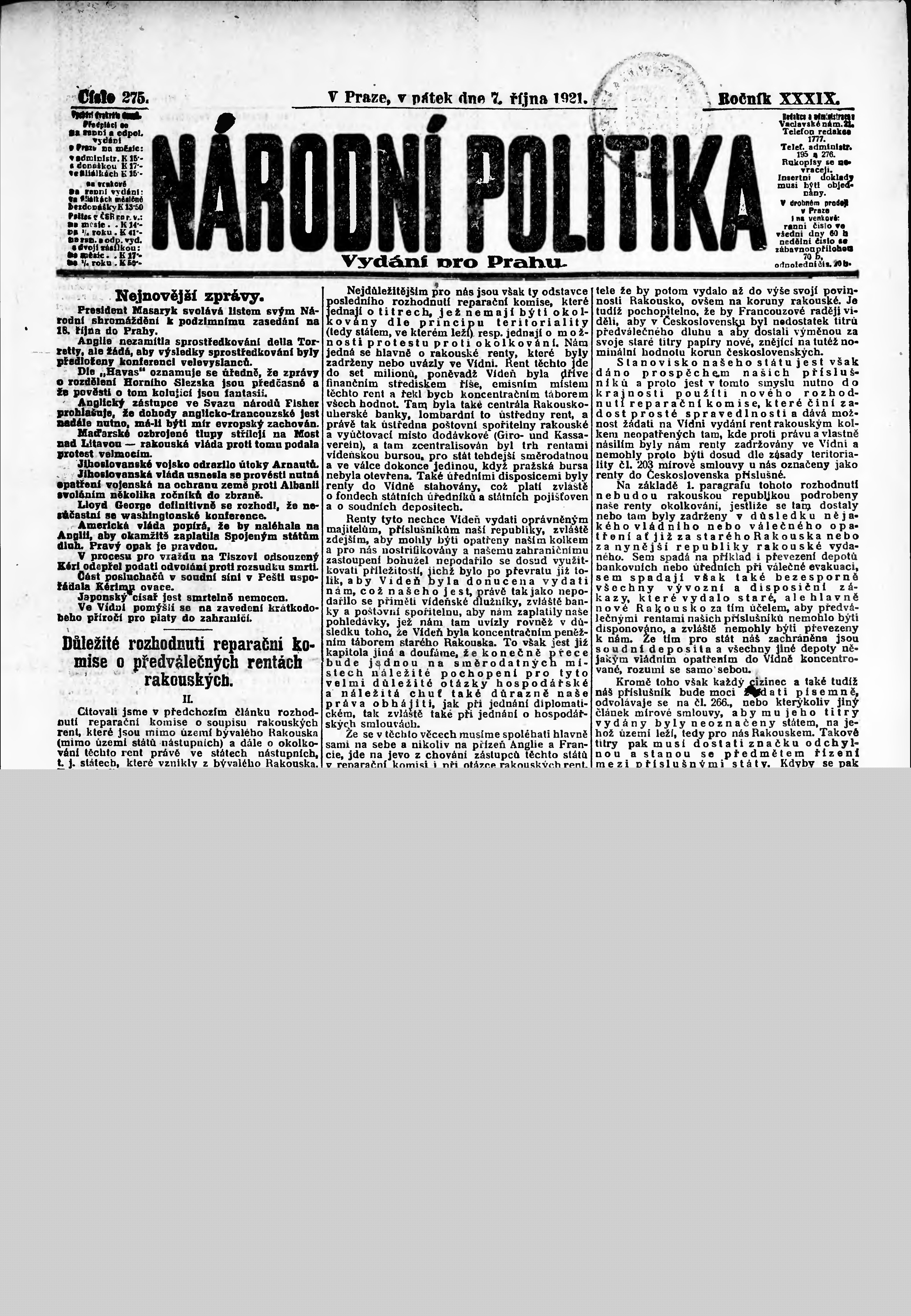 ranní vydání; vydání pro Prahu;