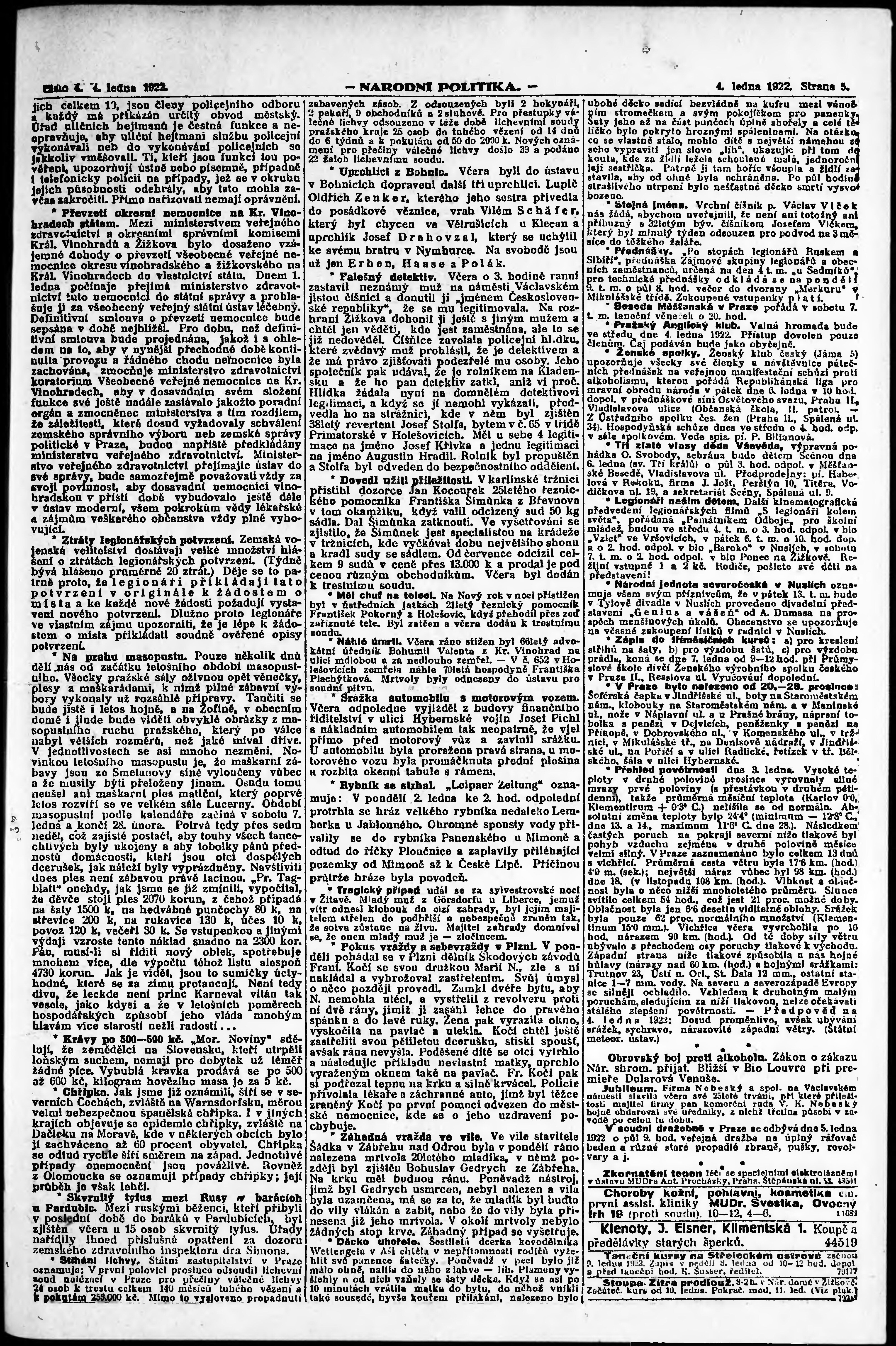 * Datum vydání výtisku: 4.1.1922 Číslo výtisku: 4 Poznámky k výtisku: ranní vydání; vydání pro Prahu;