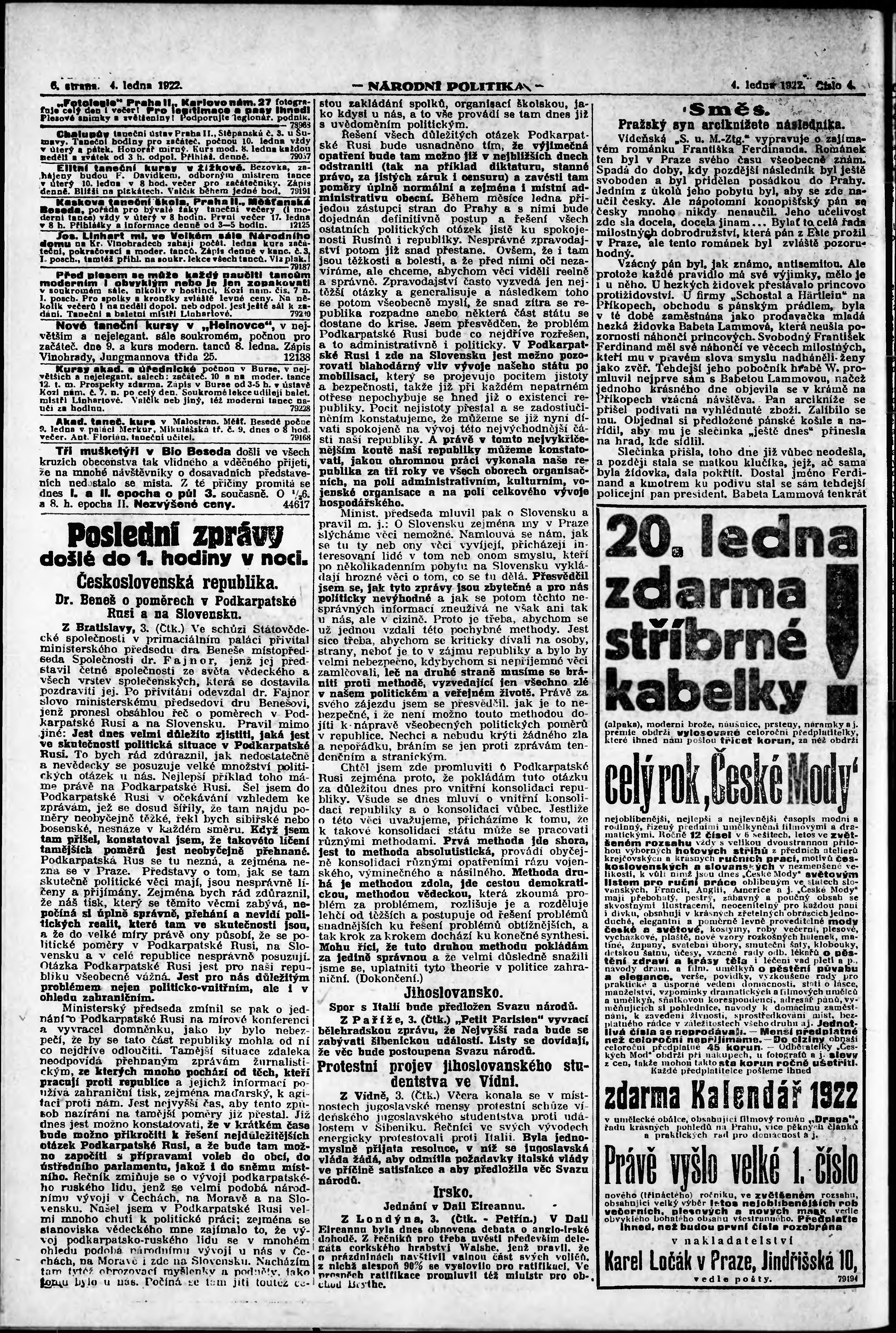 ranní vydání; vydání pro Prahu;