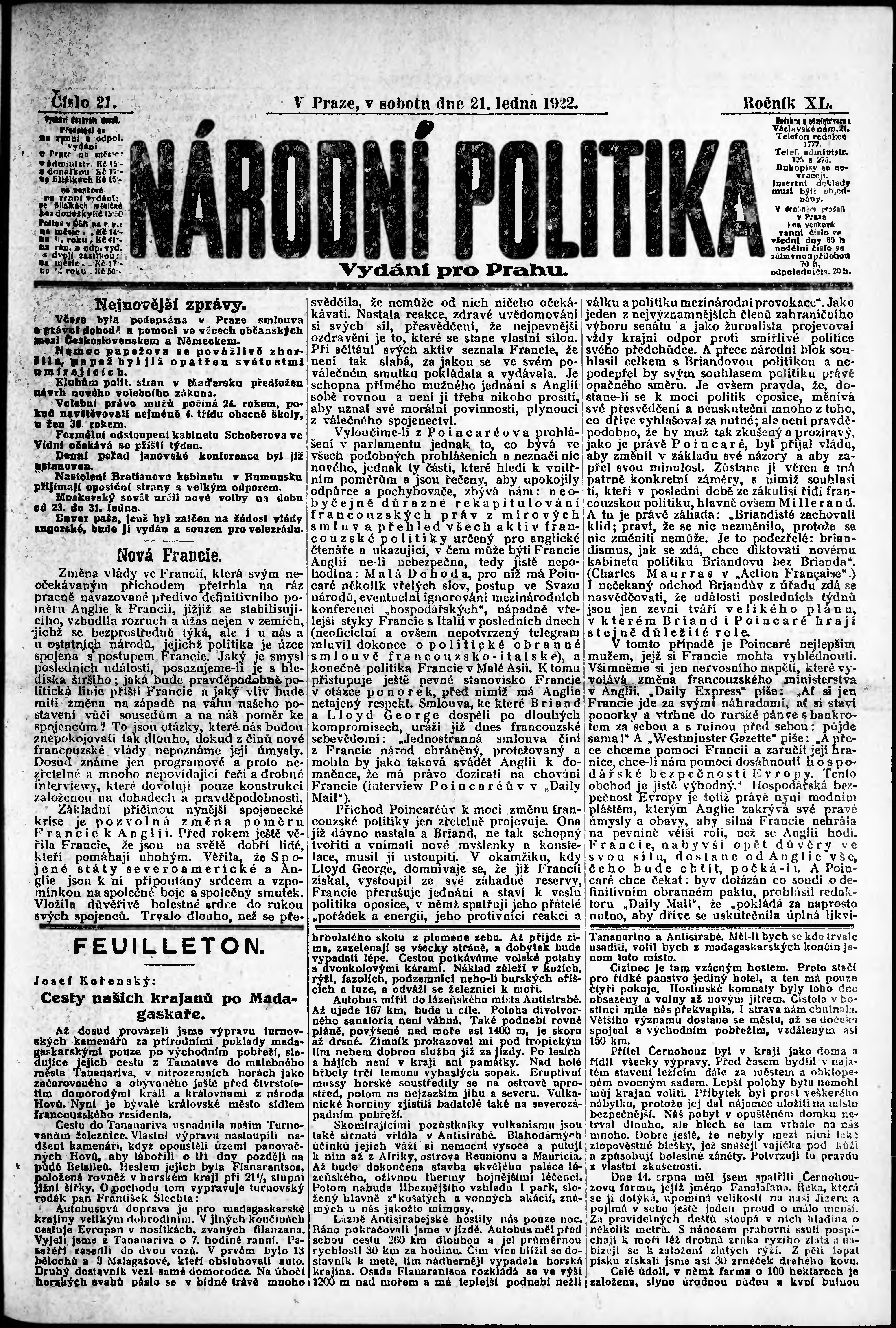 ranní vydání; vydání pro Prahu;