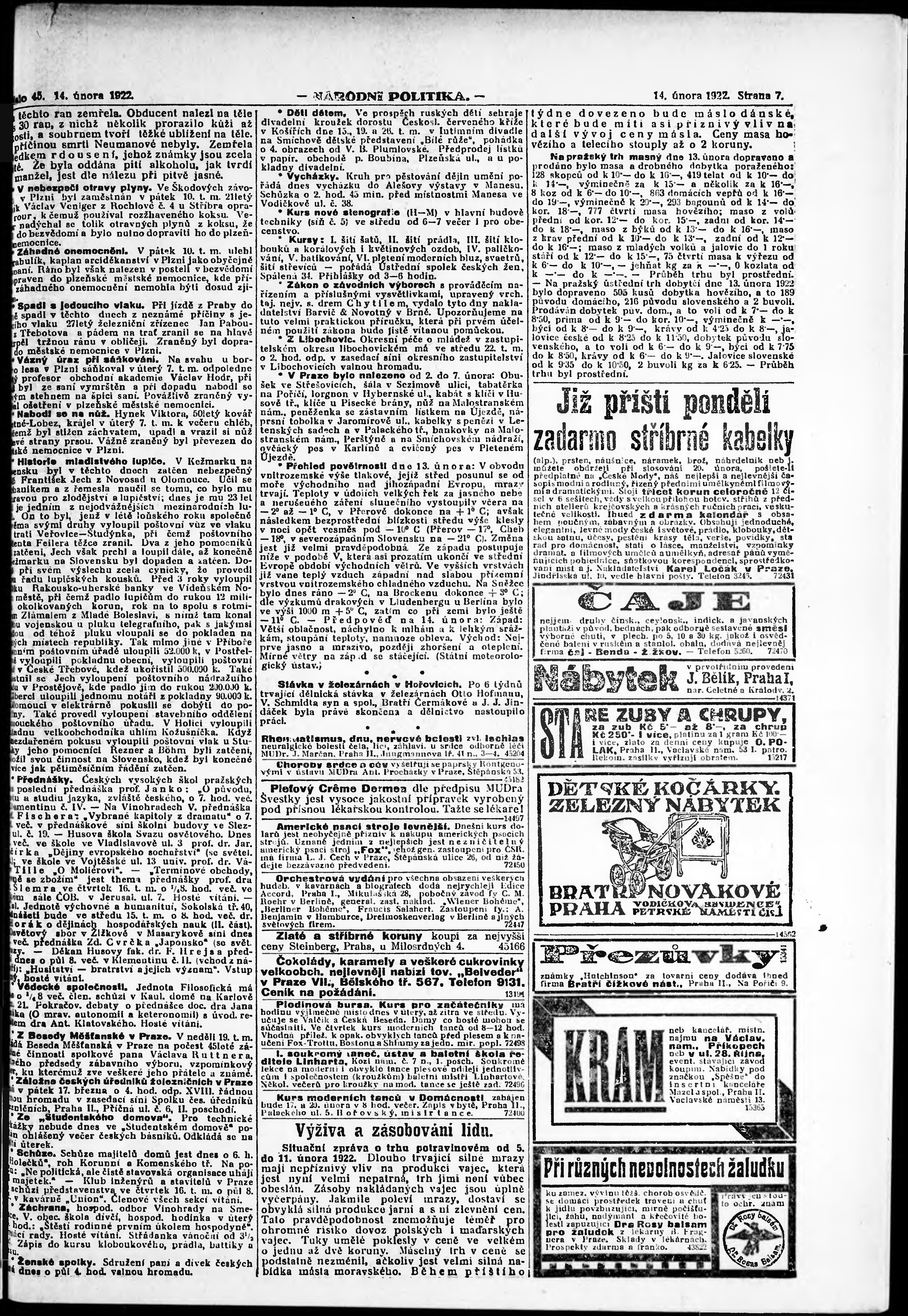 * Datum vydání výtisku: 14.2.1922 Číslo výtisku: 45 Poznámky k výtisku: ranní vydání; vydání pro Prahu;