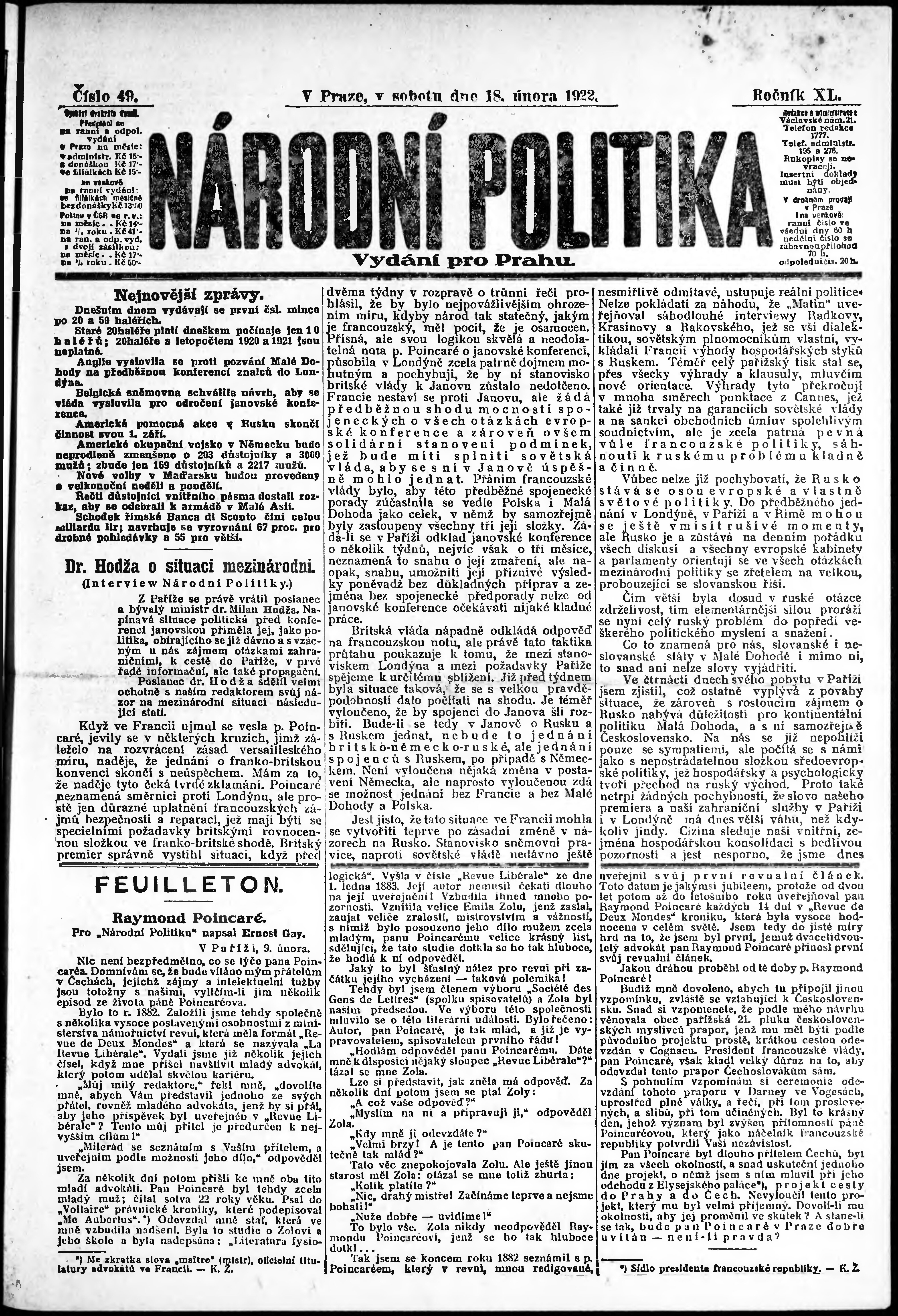 ranní vydání; vydání pro Prahu;