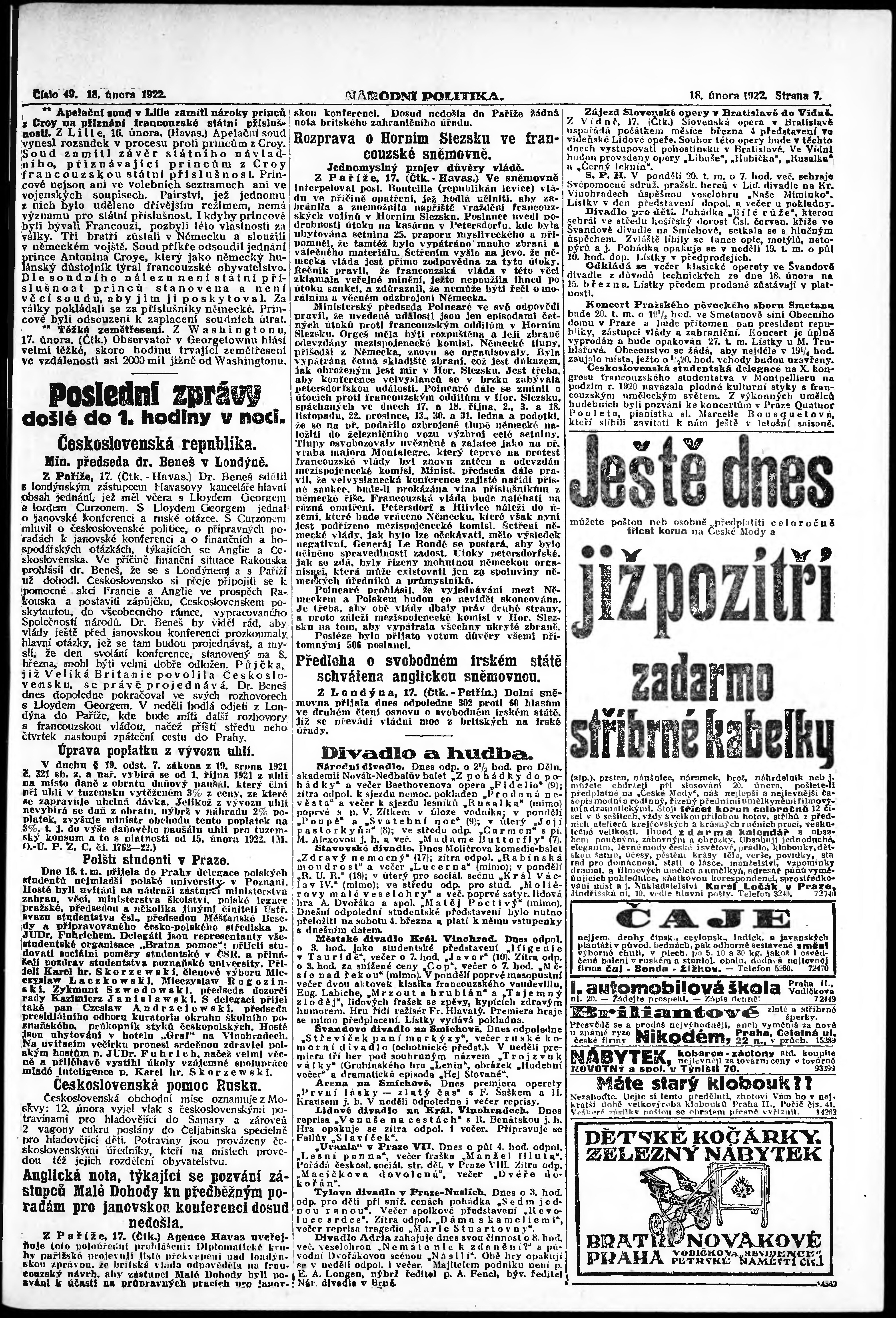 ranní vydání; vydání pro Prahu;