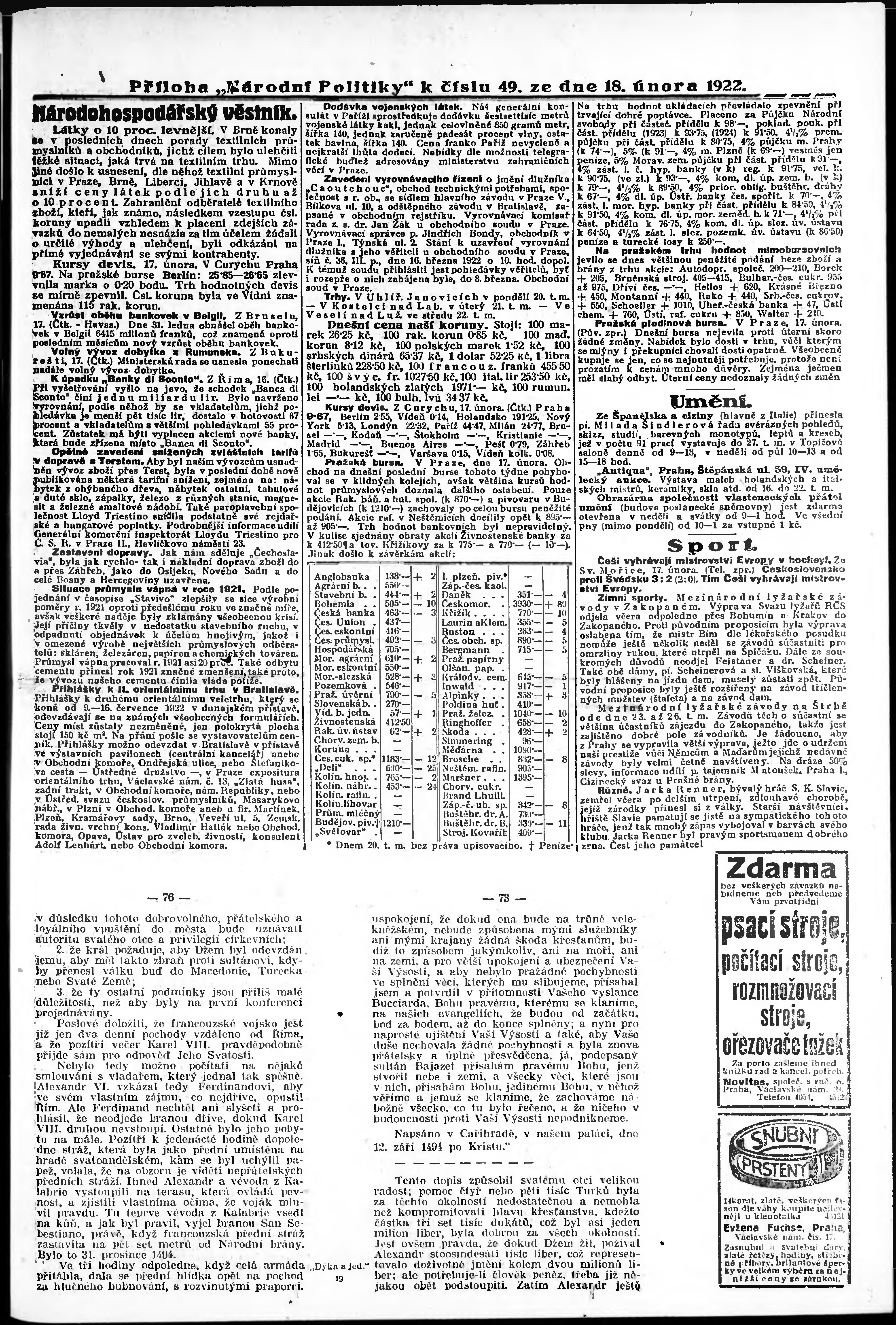 * Datum vydání výtisku: 18.2.1922 Číslo výtisku: 49 Typ výtisku: příloha