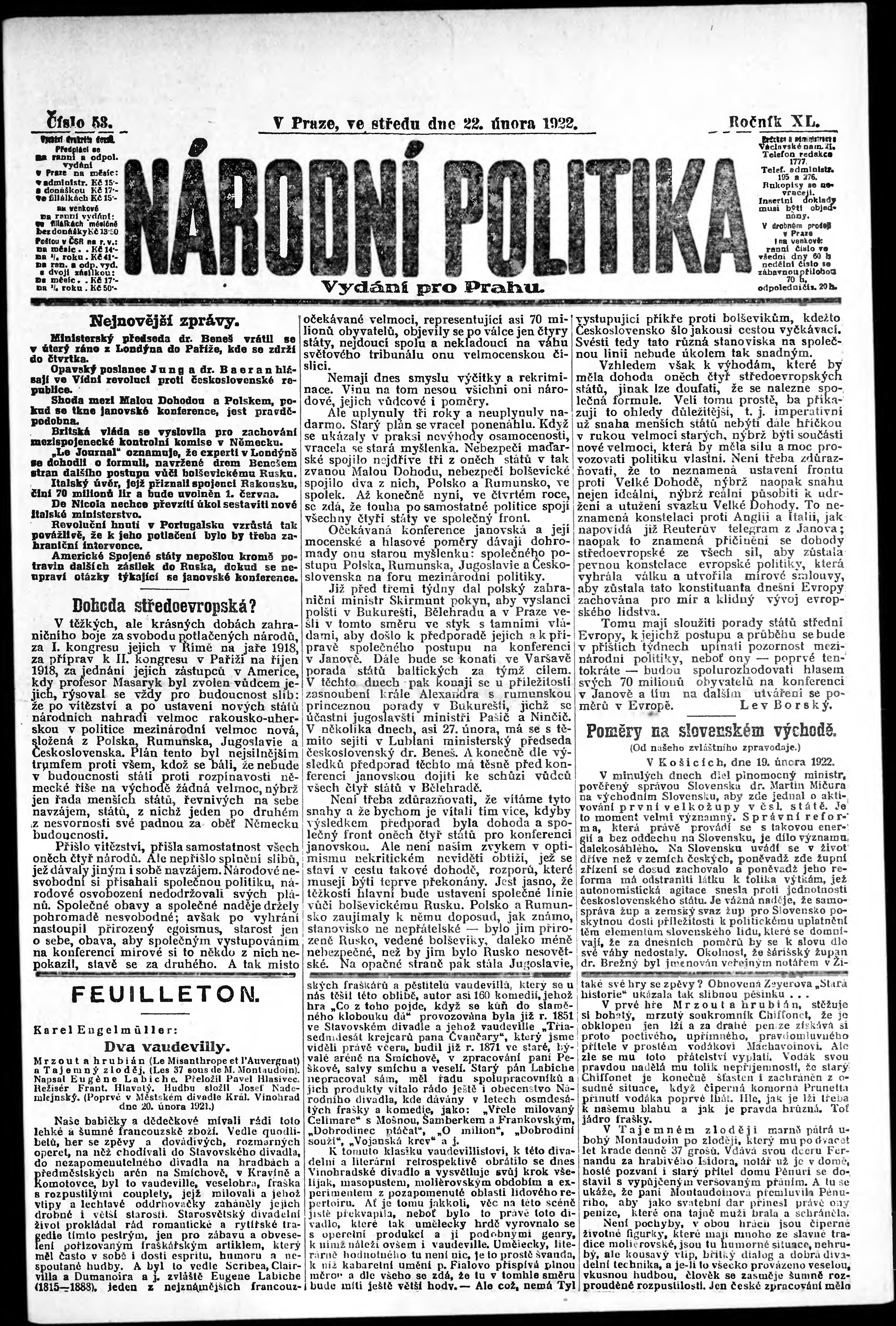 ranní vydání; vydání pro Prahu;