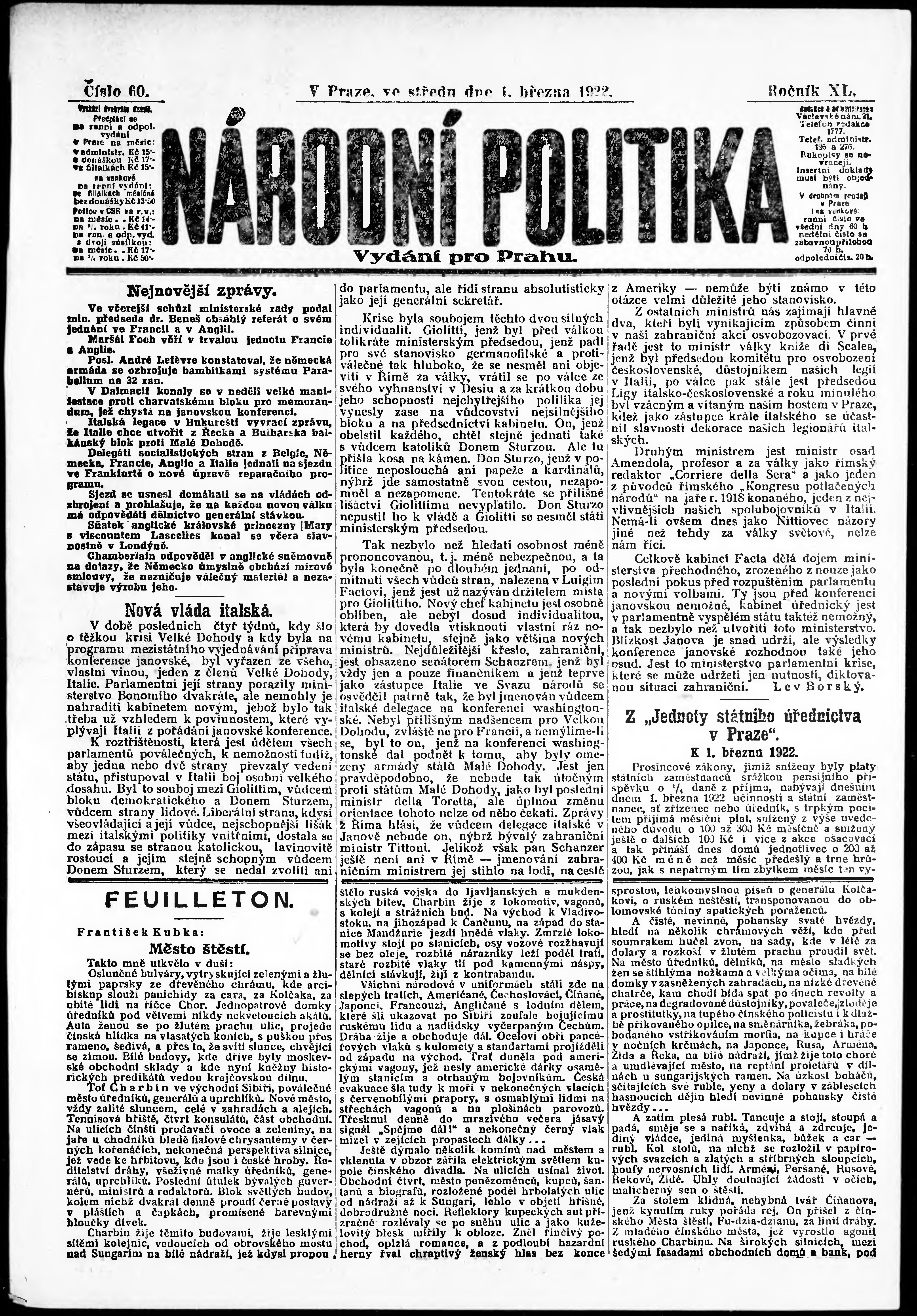 ranní vydání; vydání pro Prahu;