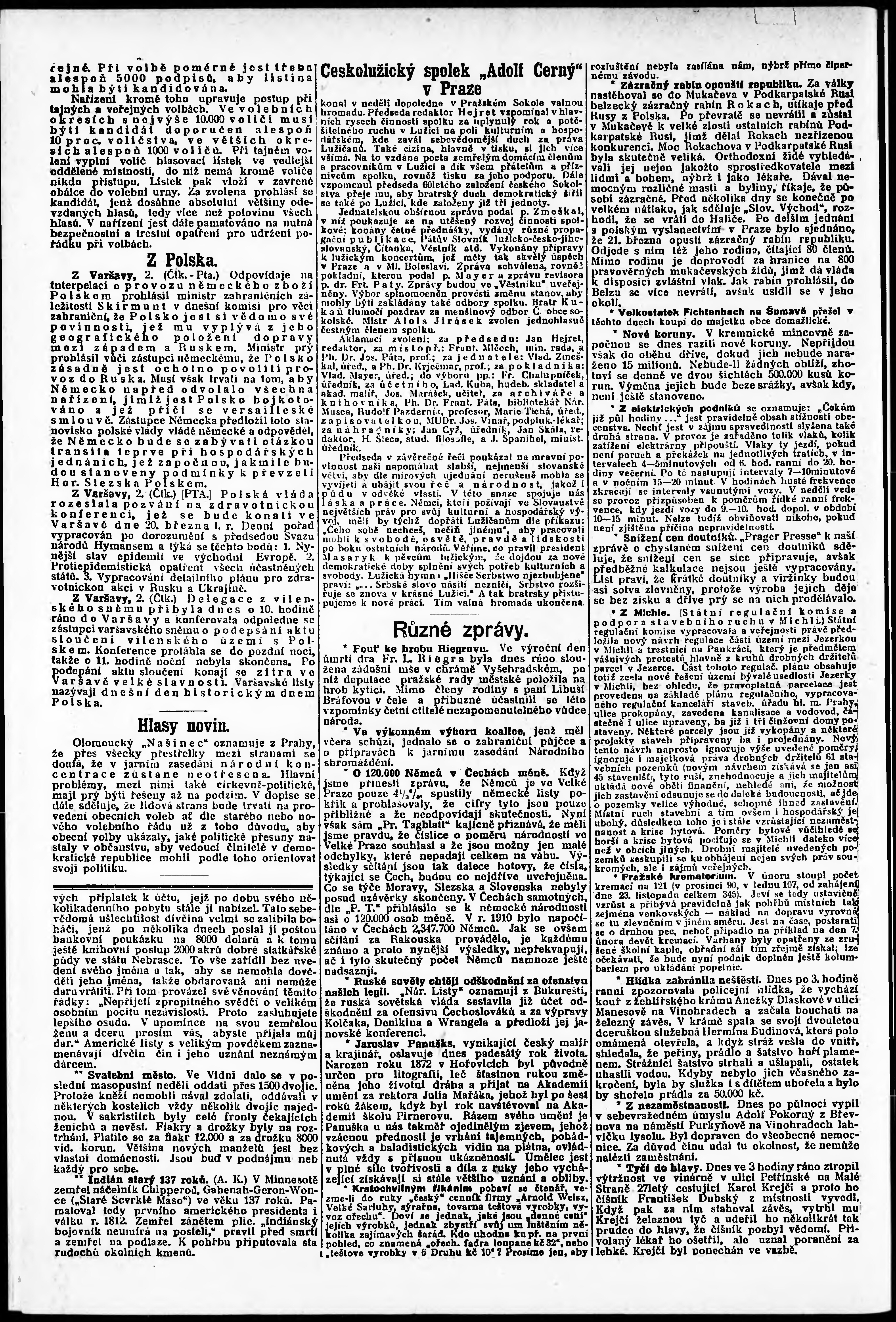 * Datum vydání výtisku: 3.3.1922 Číslo výtisku: 62 Poznámky k výtisku: odpolední vydání;