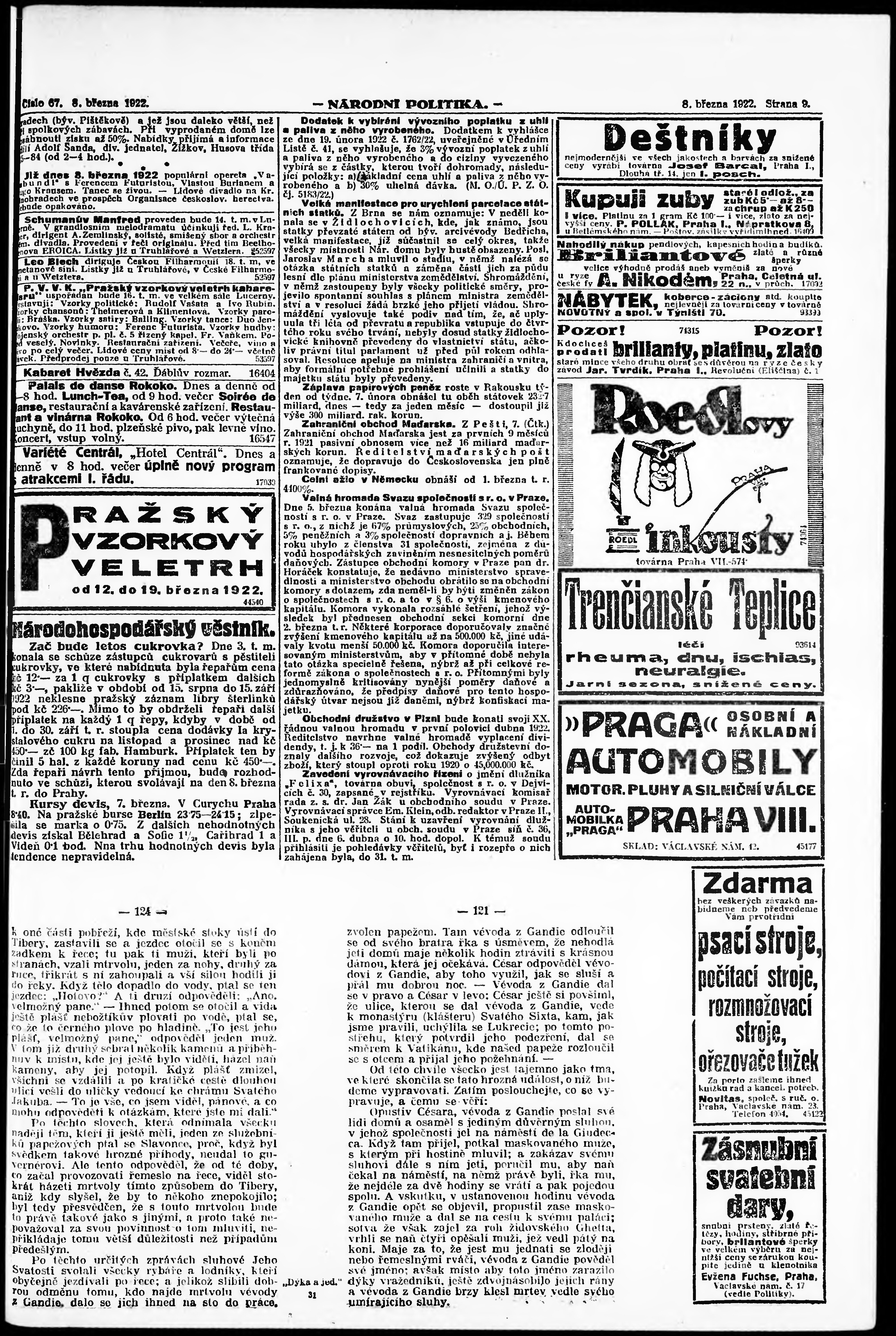 * Datum vydání výtisku: 8.3.1922 Číslo výtisku: 67 Poznámky k výtisku: ranní vydání; vydání pro Prahu;