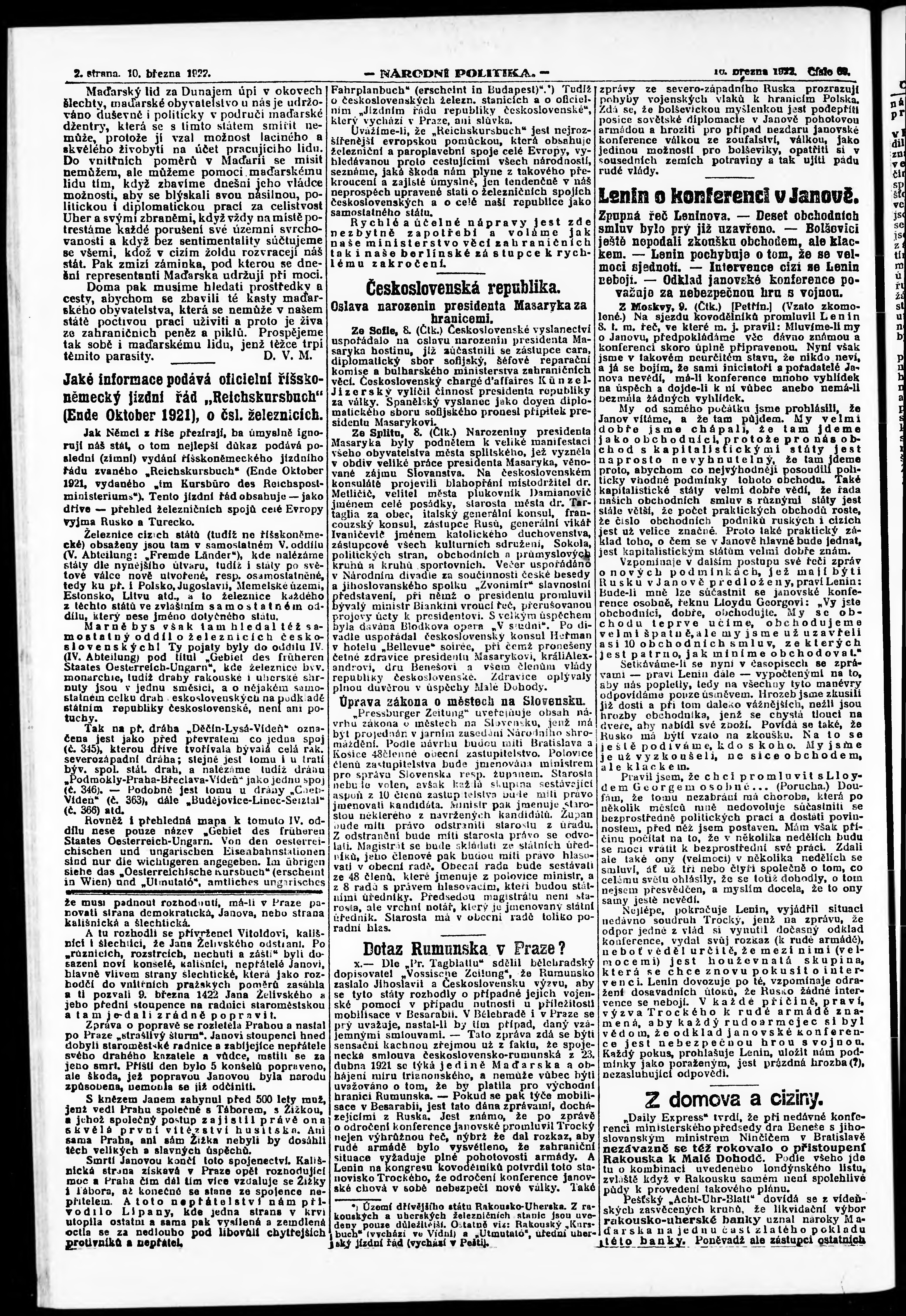 * Datum vydání výtisku: 10.3.1922 Číslo výtisku: 69 Poznámky k výtisku: ranní vydání; vydání pro Prahu;