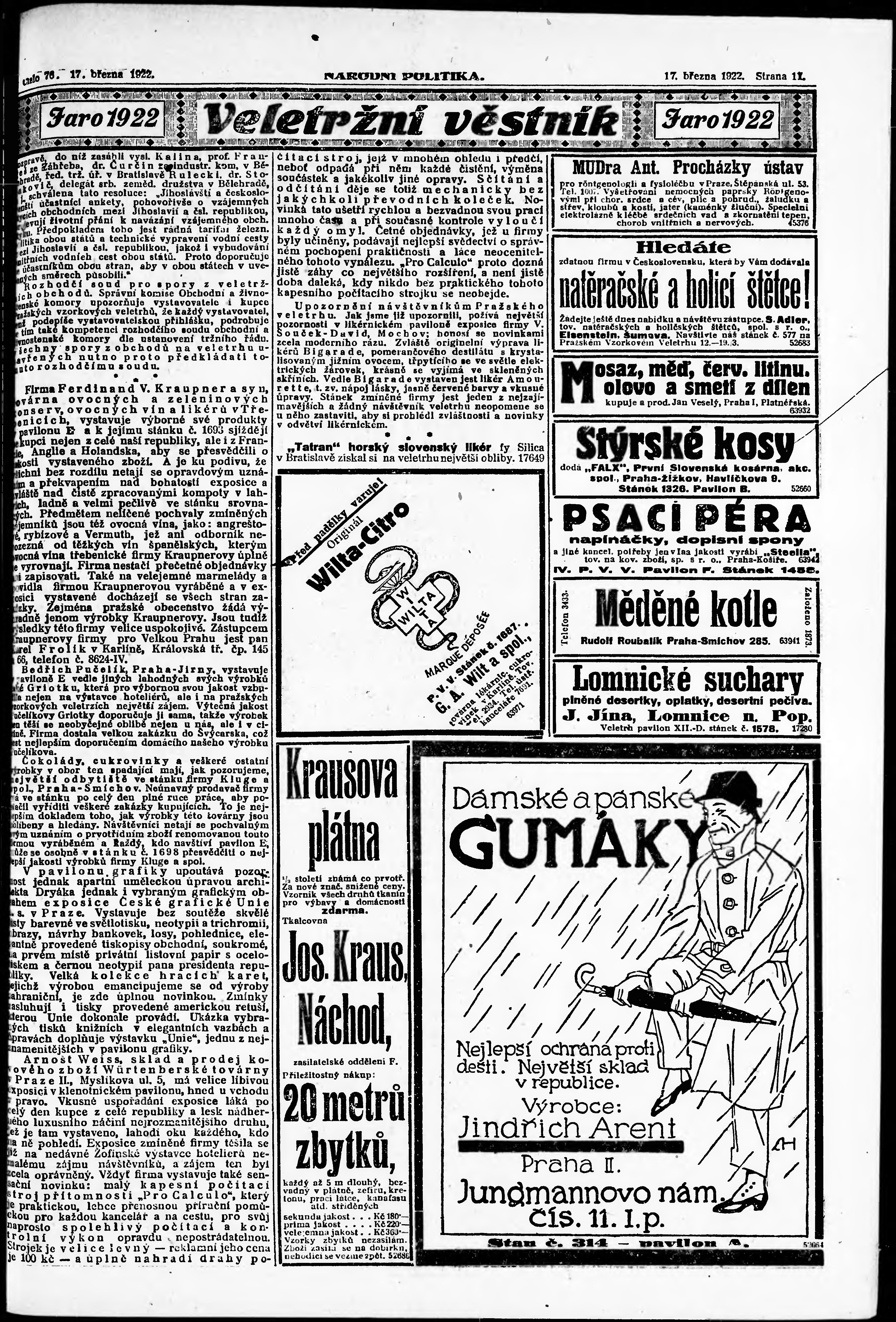 * Datum vydání výtisku: 17.3.1922 Číslo výtisku: 76 Poznámky k výtisku: ranní vydání; vydání pro Prahu;