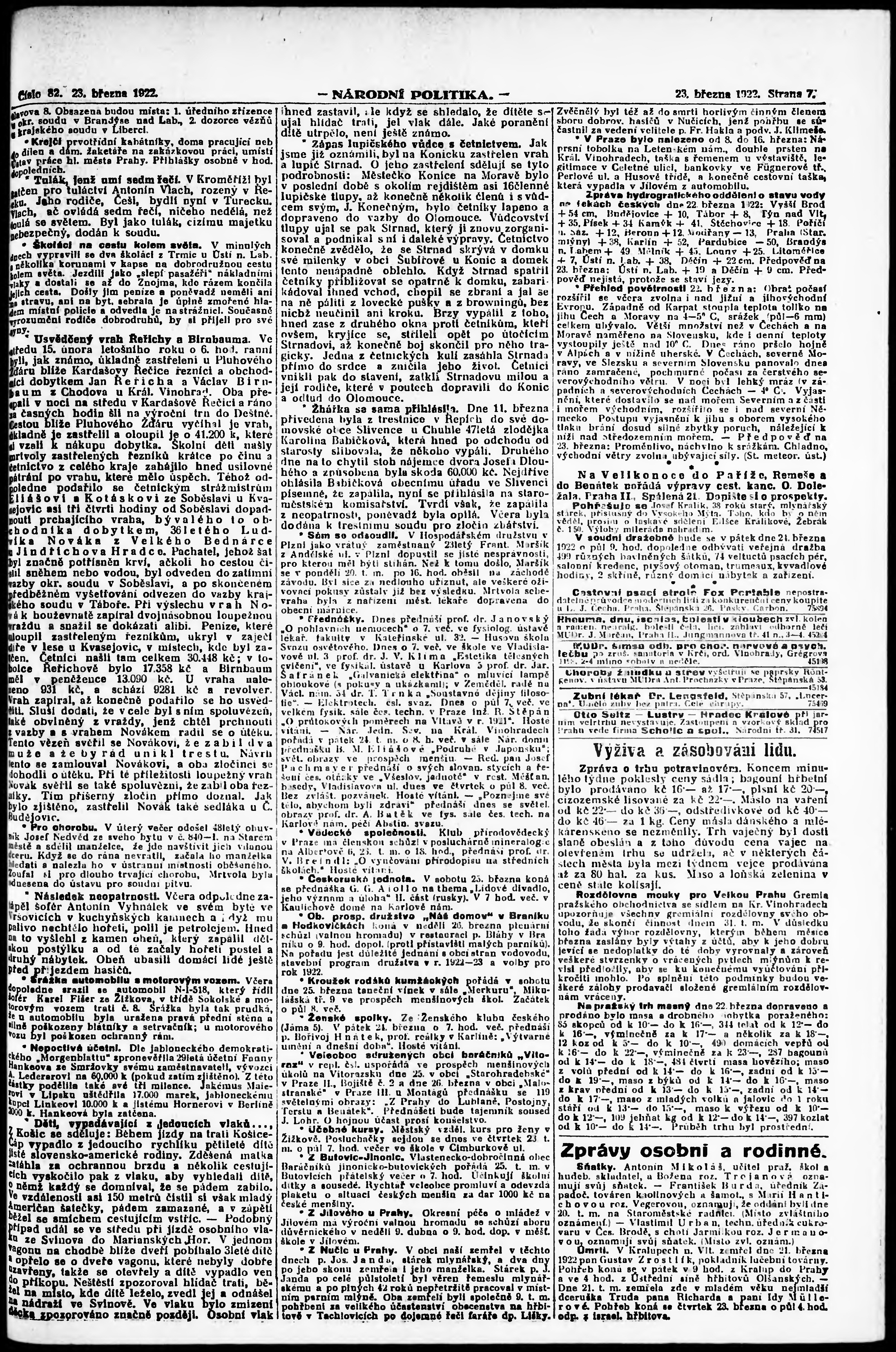 * Datum vydání výtisku: 23.3.1922 Číslo výtisku: 82 Poznámky k výtisku: ranní vydání; vydání pro Prahu;