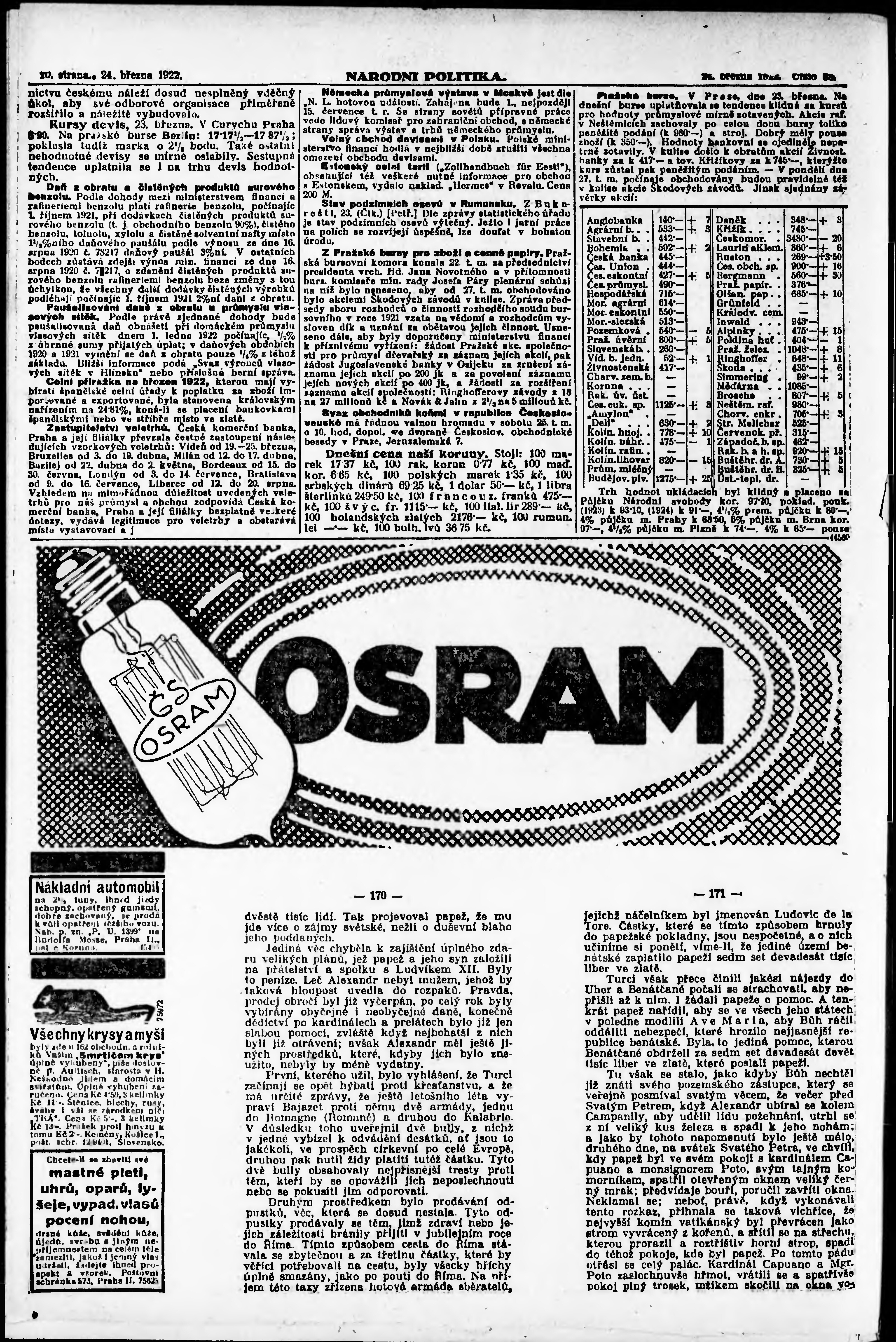 * Datum vydání výtisku: 24.3.1922 Číslo výtisku: 83 Poznámky k výtisku: ranní vydání; vydání pro Prahu;