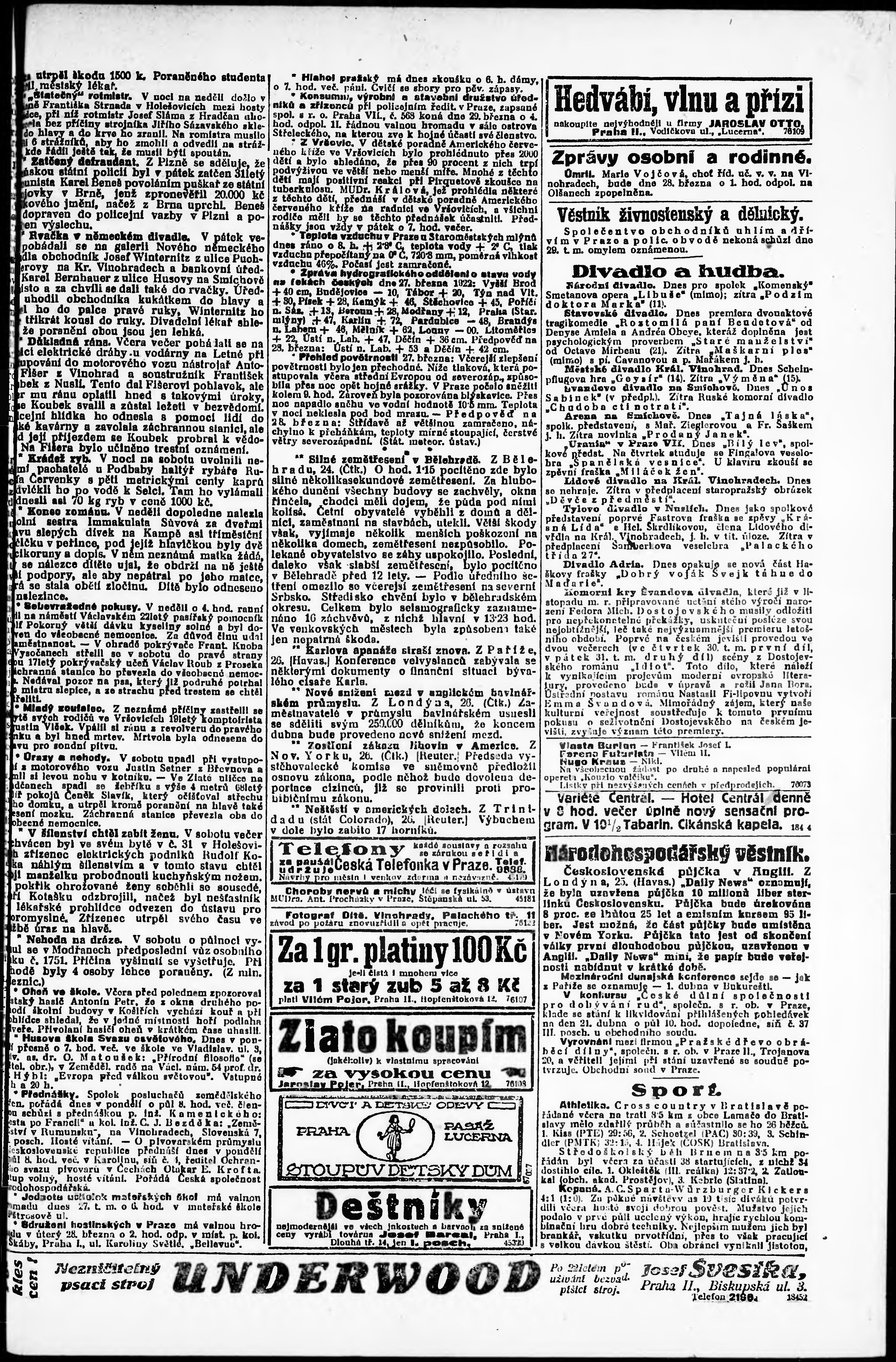 * Datum vydání výtisku: 27.3.1922 Číslo výtisku: 85 Poznámky k výtisku: odpolední vydání;