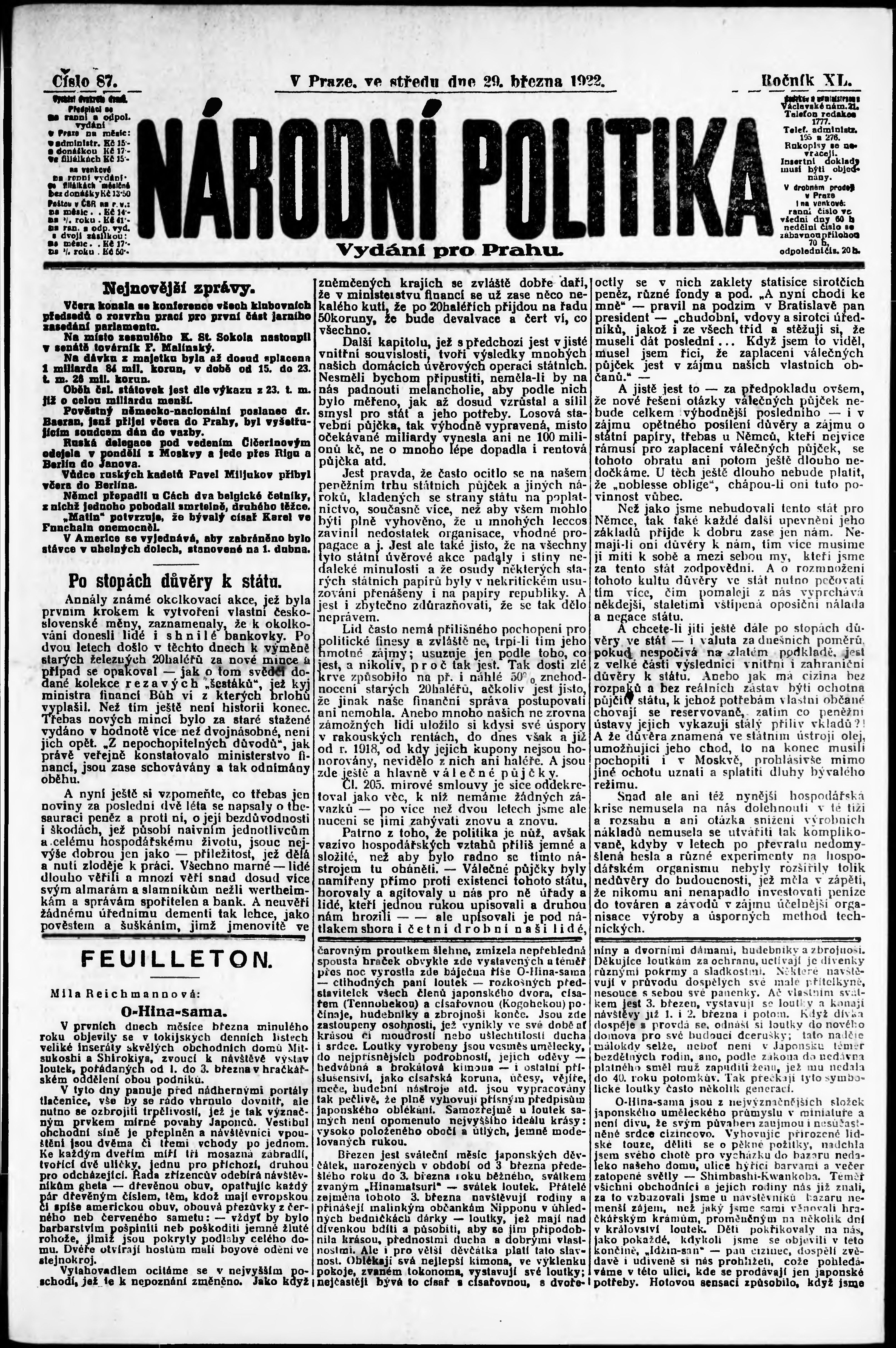 ranní vydání; vydání pro Prahu;