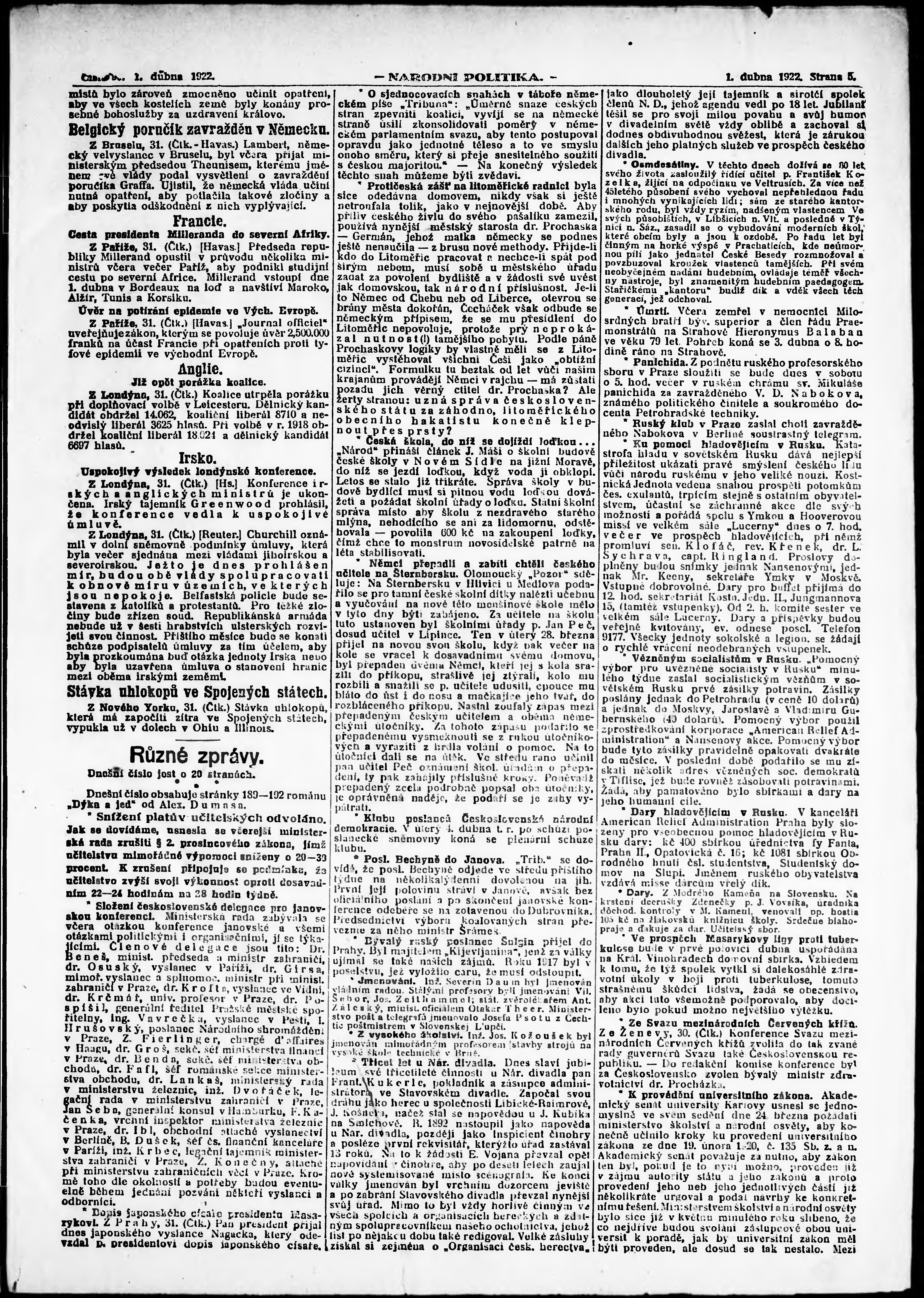 ranní vydání; vydání pro Prahu;