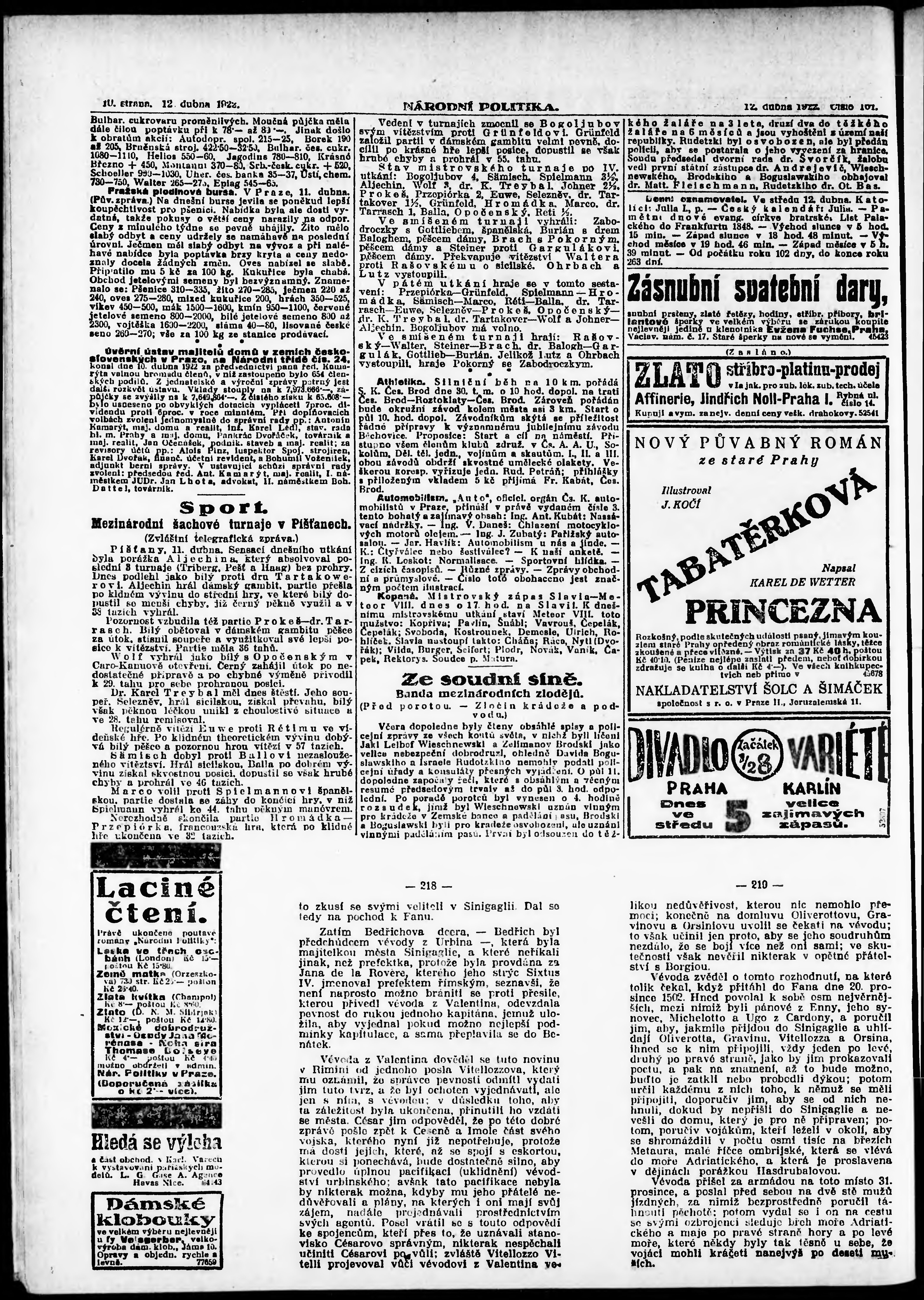 ranní vydání; vydání pro Prahu;