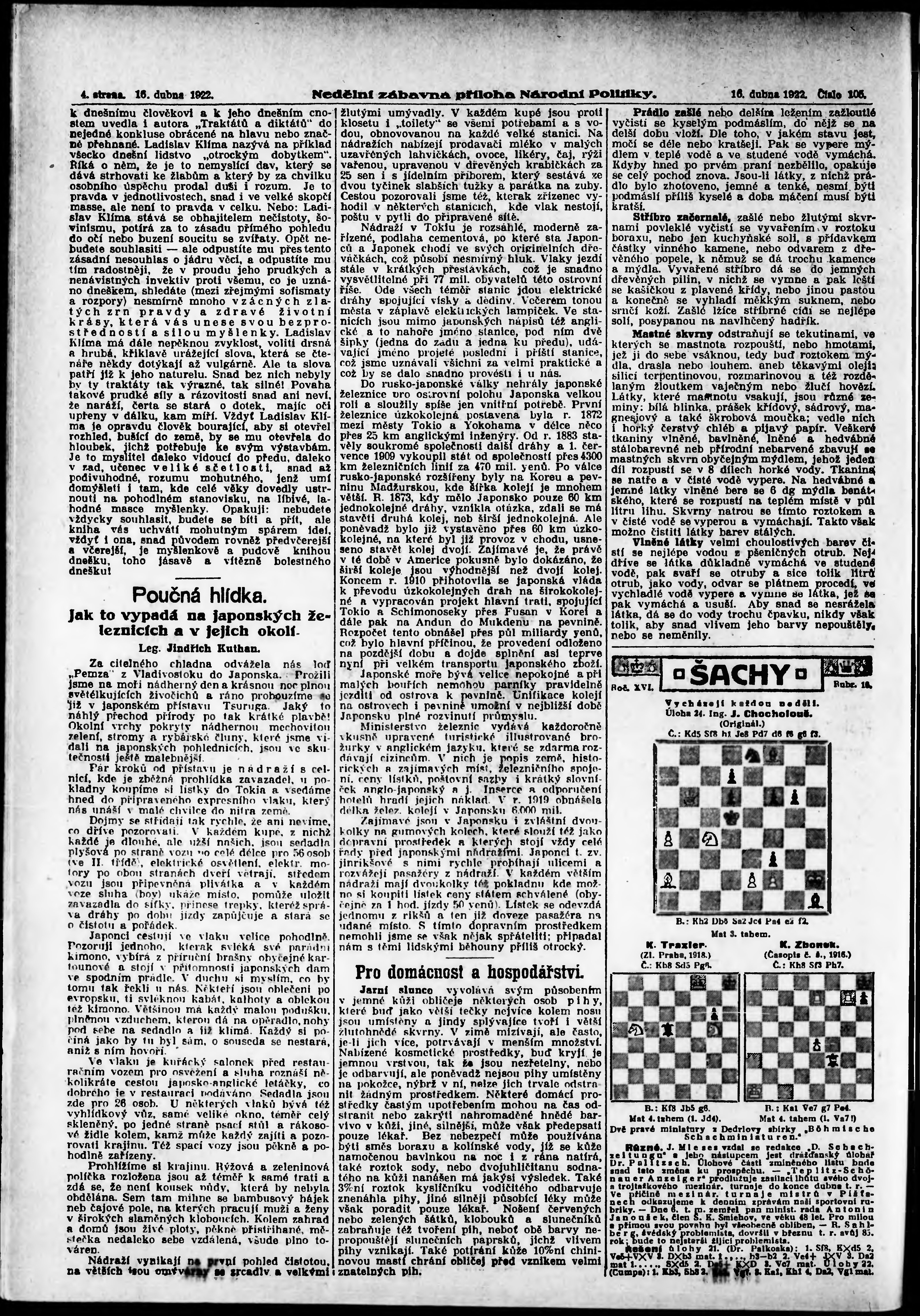 * Datum vydání výtisku: 16.4.1922 Číslo výtisku: 105 Typ výtisku: příloha
