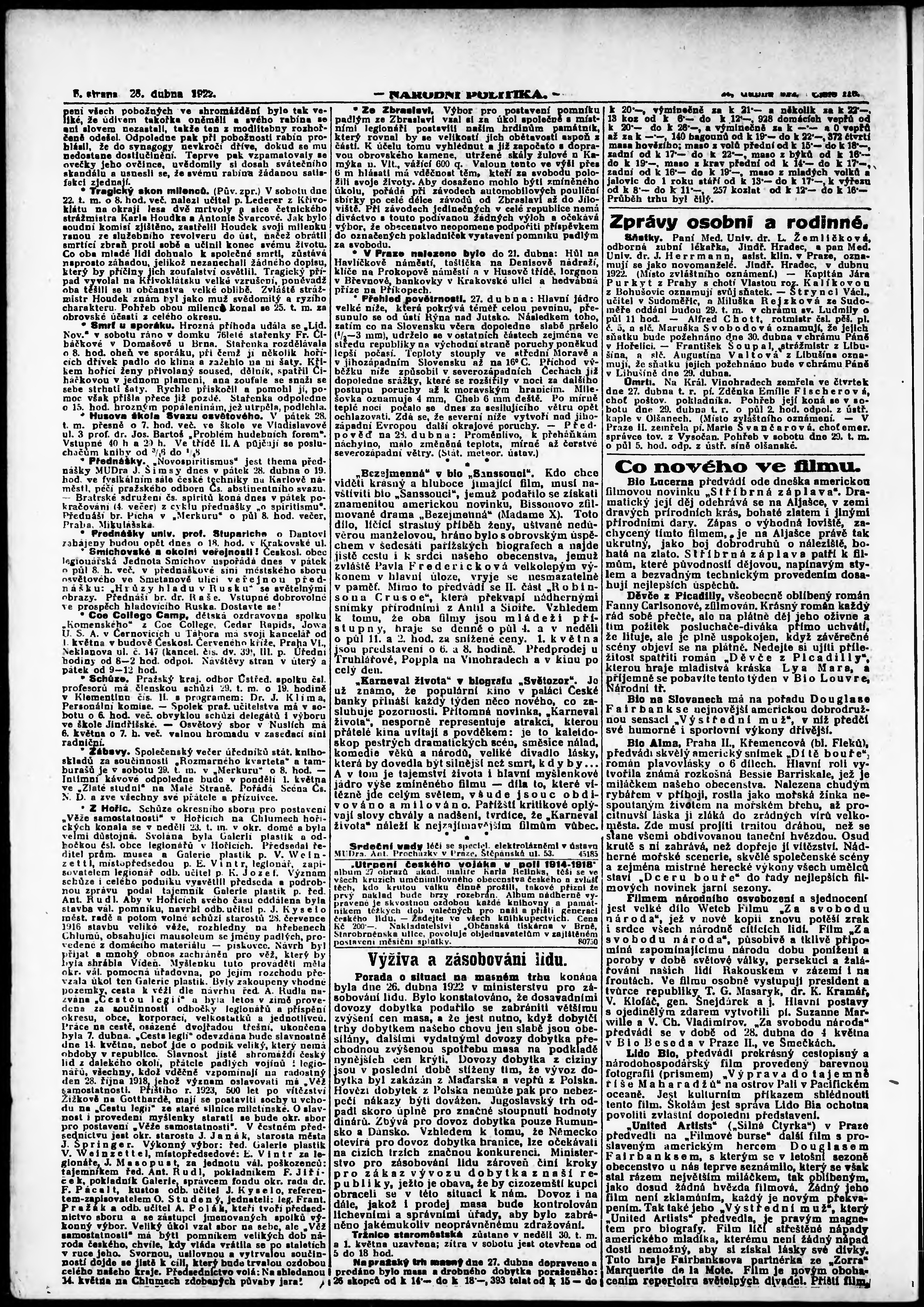 * Datum vydání výtisku: 28.4.1922 Číslo výtisku: 116 Poznámky k výtisku: ranní vydání; vydání pro Prahu;