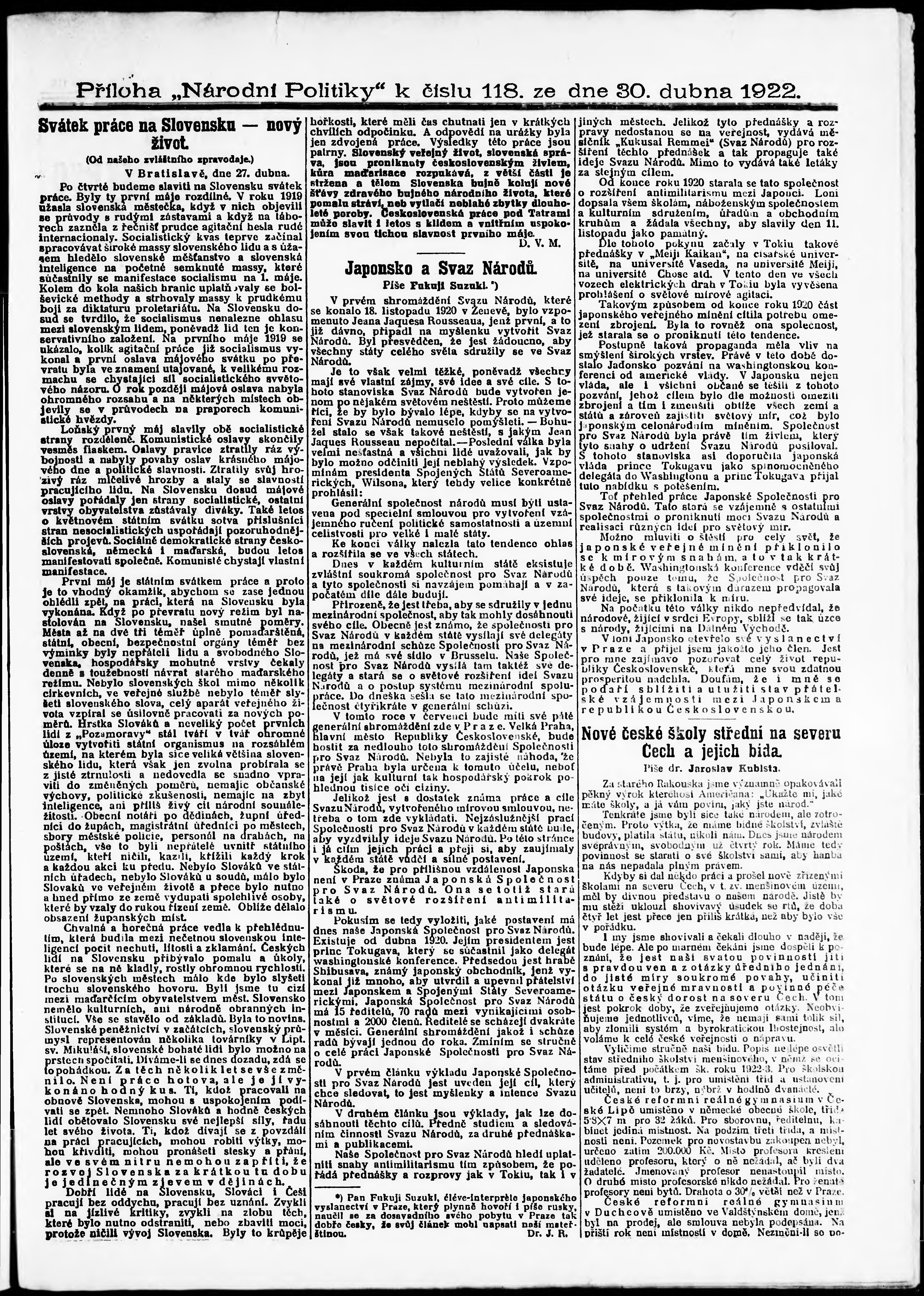 * Datum vydání výtisku: 30.4.1922 Číslo výtisku: 118 Typ výtisku: příloha