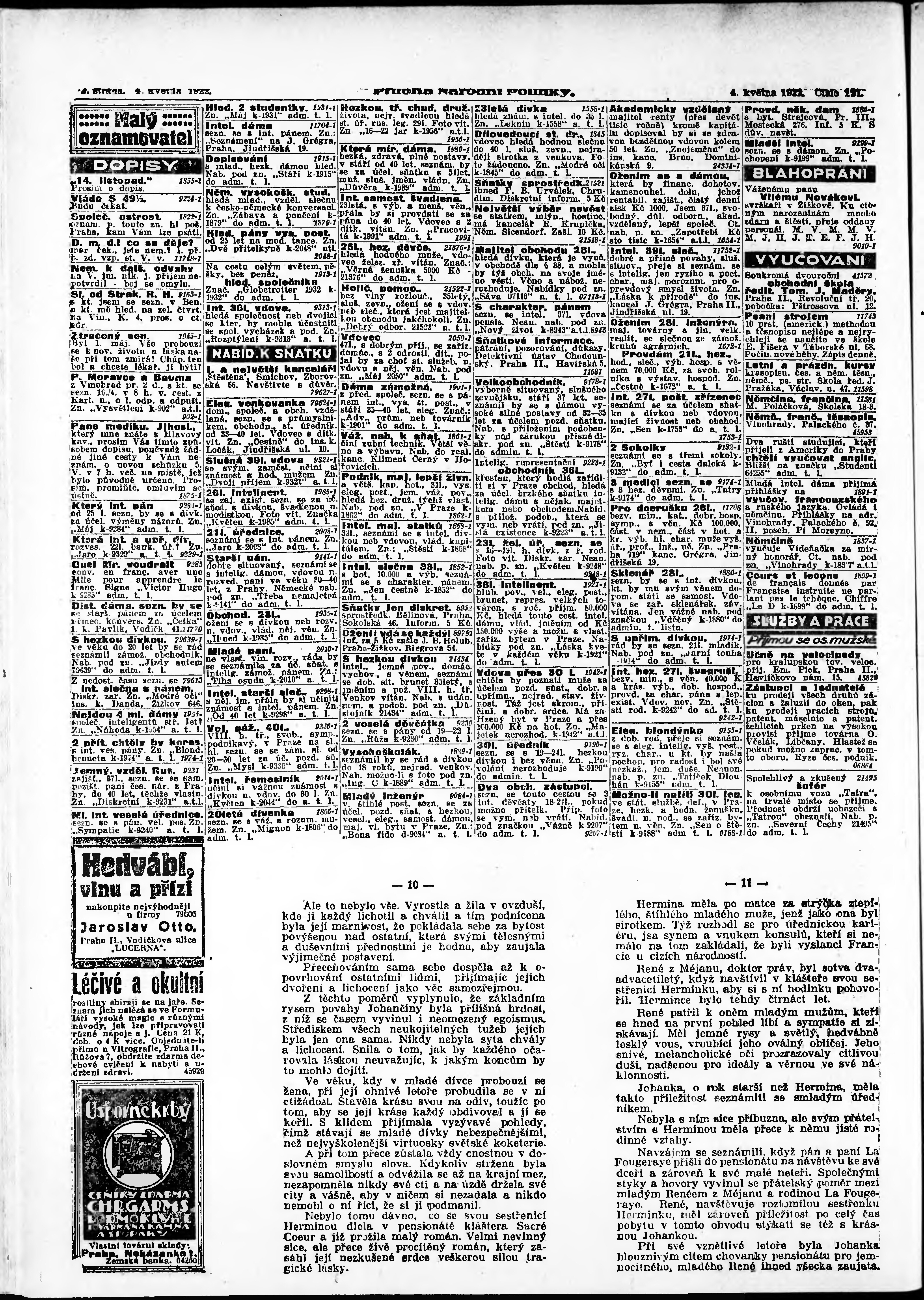 * Datum vydání výtisku: 4.5.1922 Číslo výtisku: 121 Typ výtisku: příloha