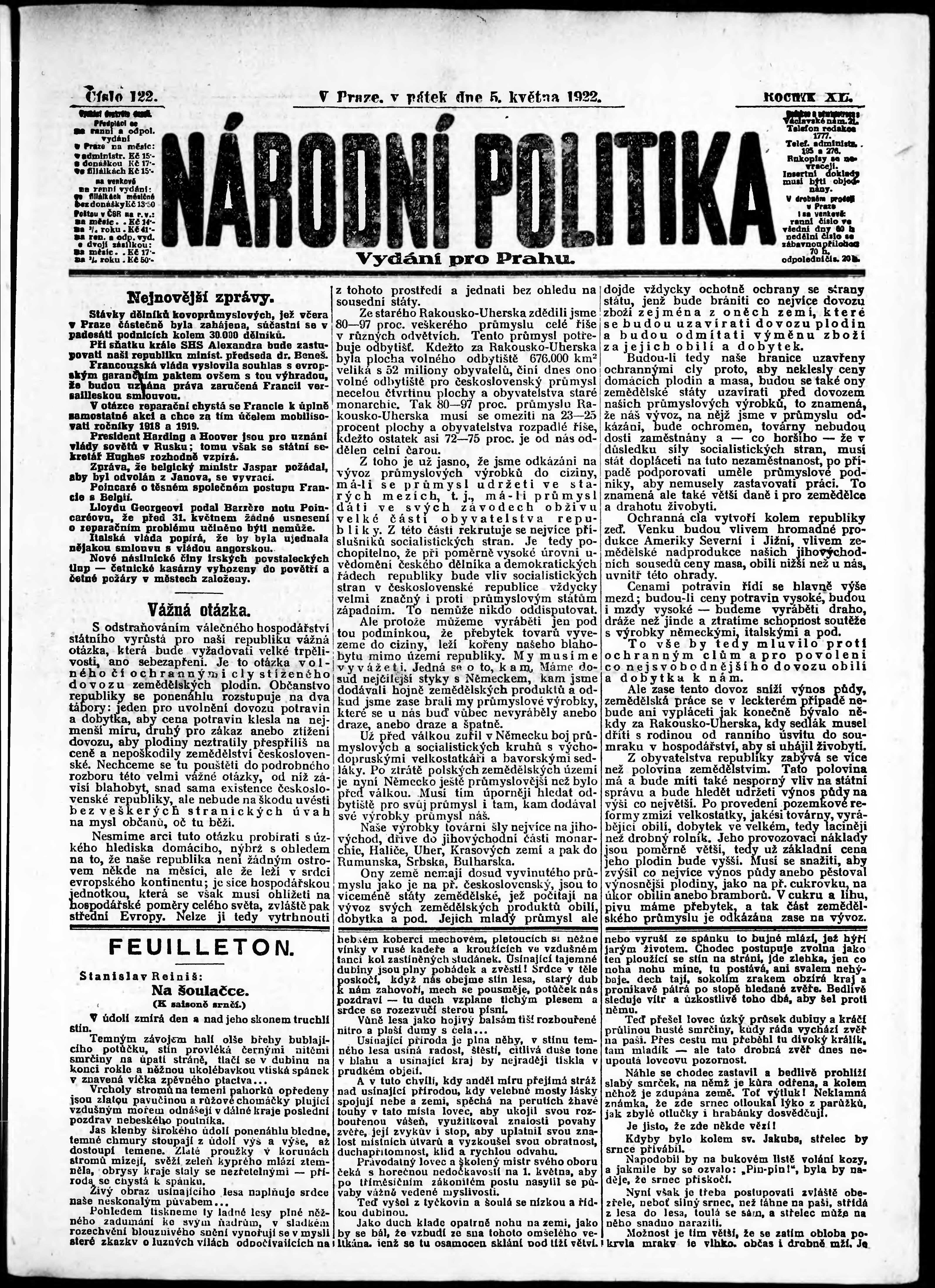ranní vydání; vydání pro Prahu;