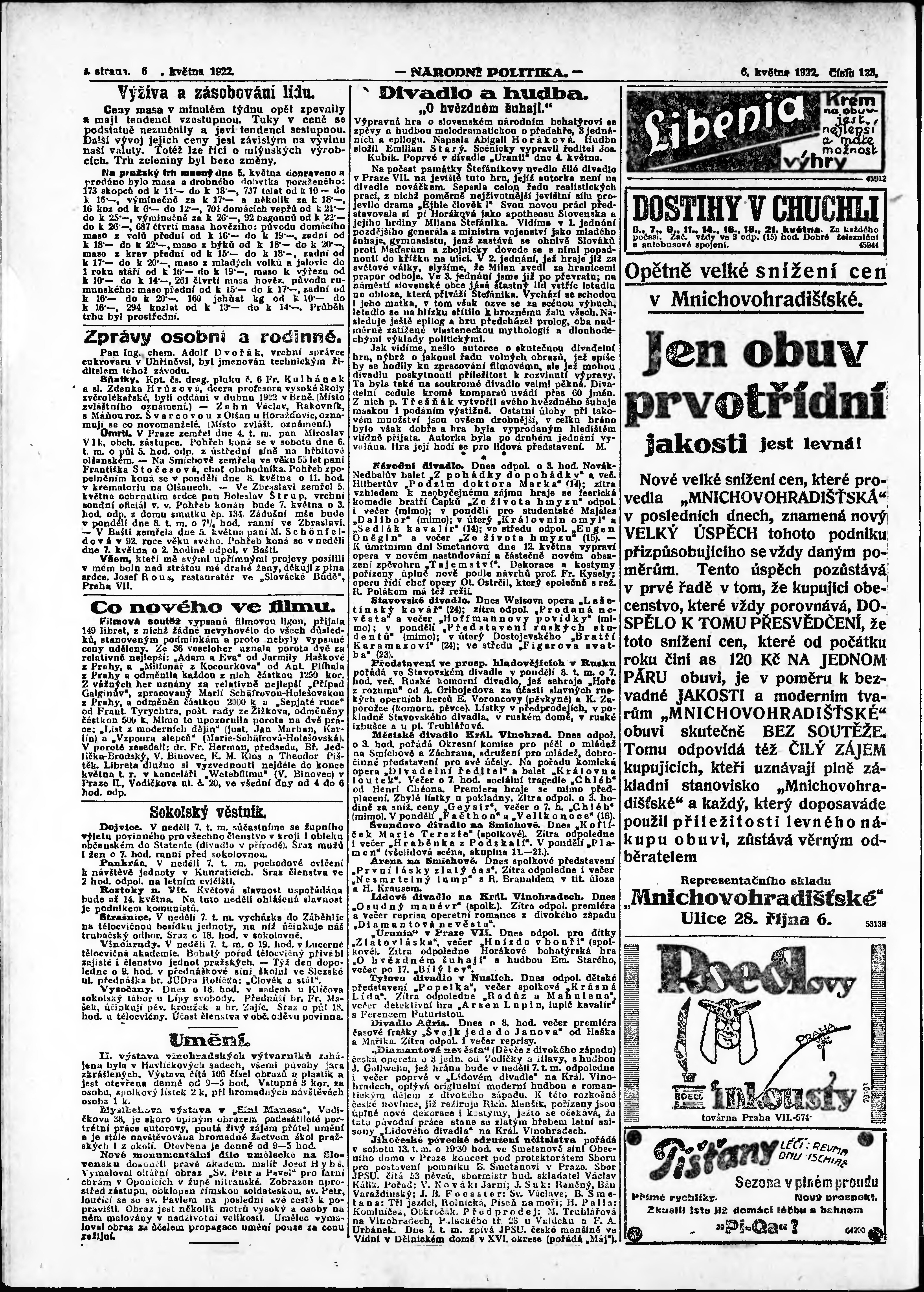 * Datum vydání výtisku: 6.5.1922 Číslo výtisku: 123 Poznámky k výtisku: ranní vydání; vydání pro Prahu;