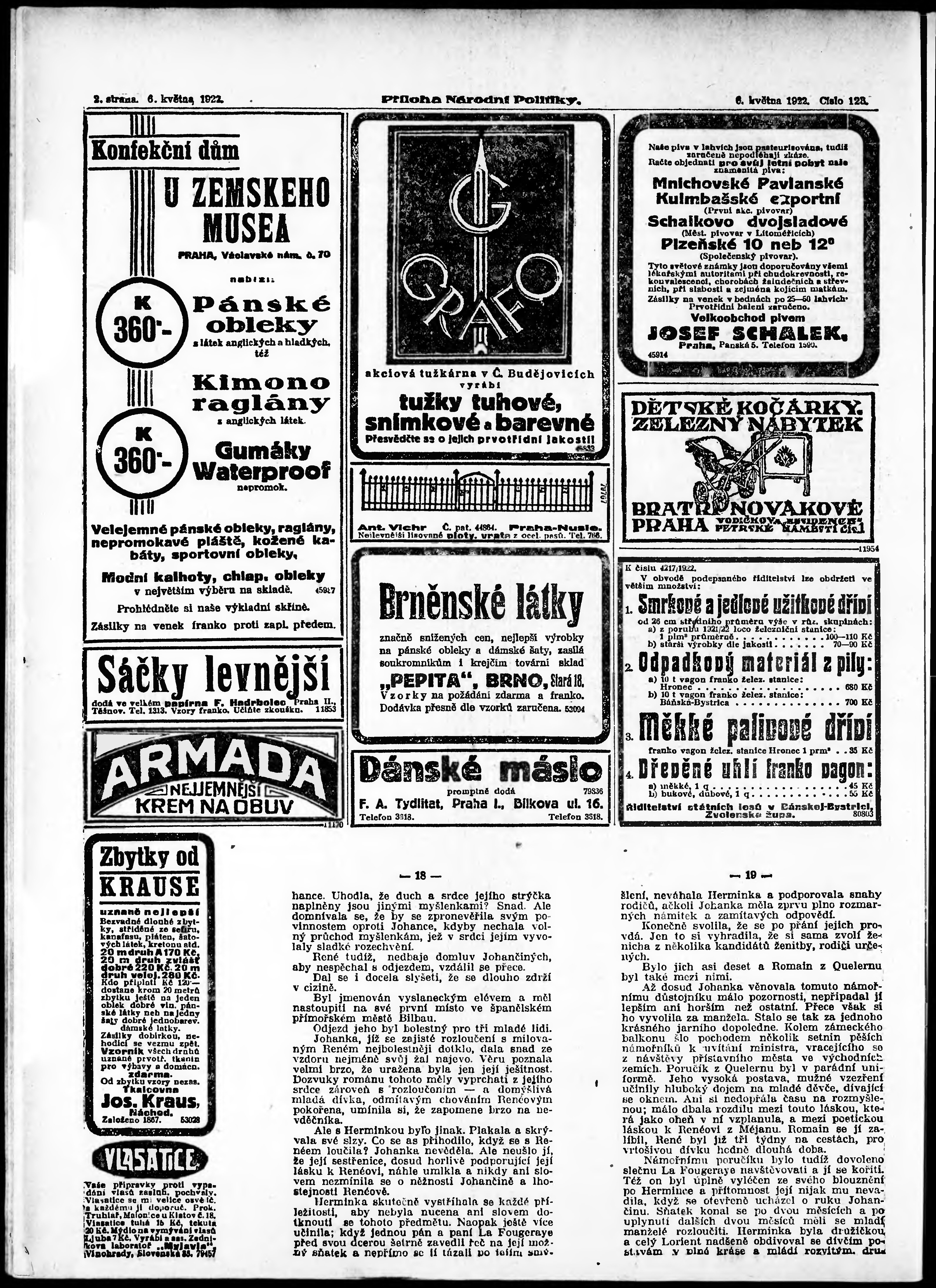 * Datum vydání výtisku: 6.5.1922 Číslo výtisku: 123 Typ výtisku: příloha