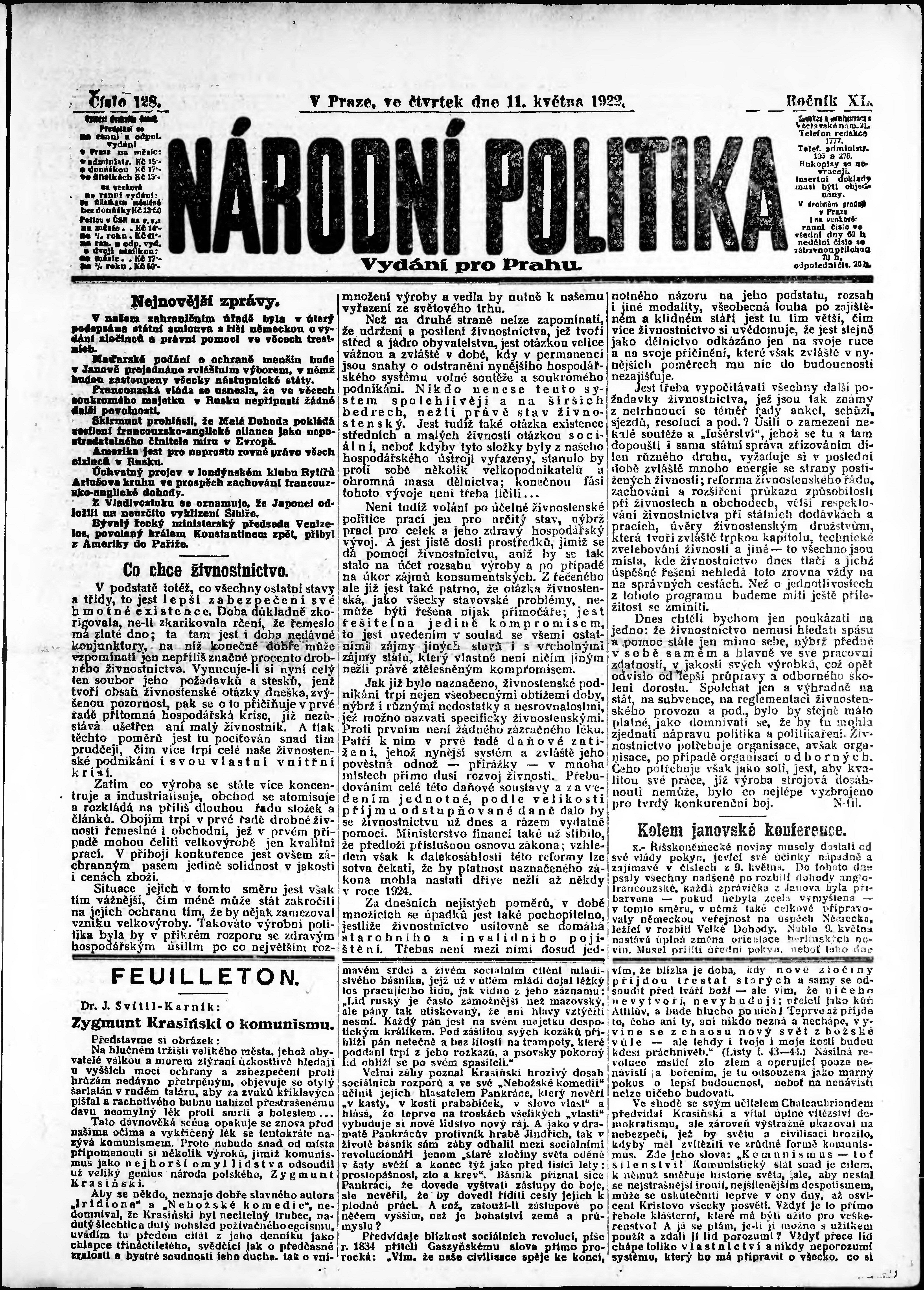 ranní vydání; vydání pro Prahu;