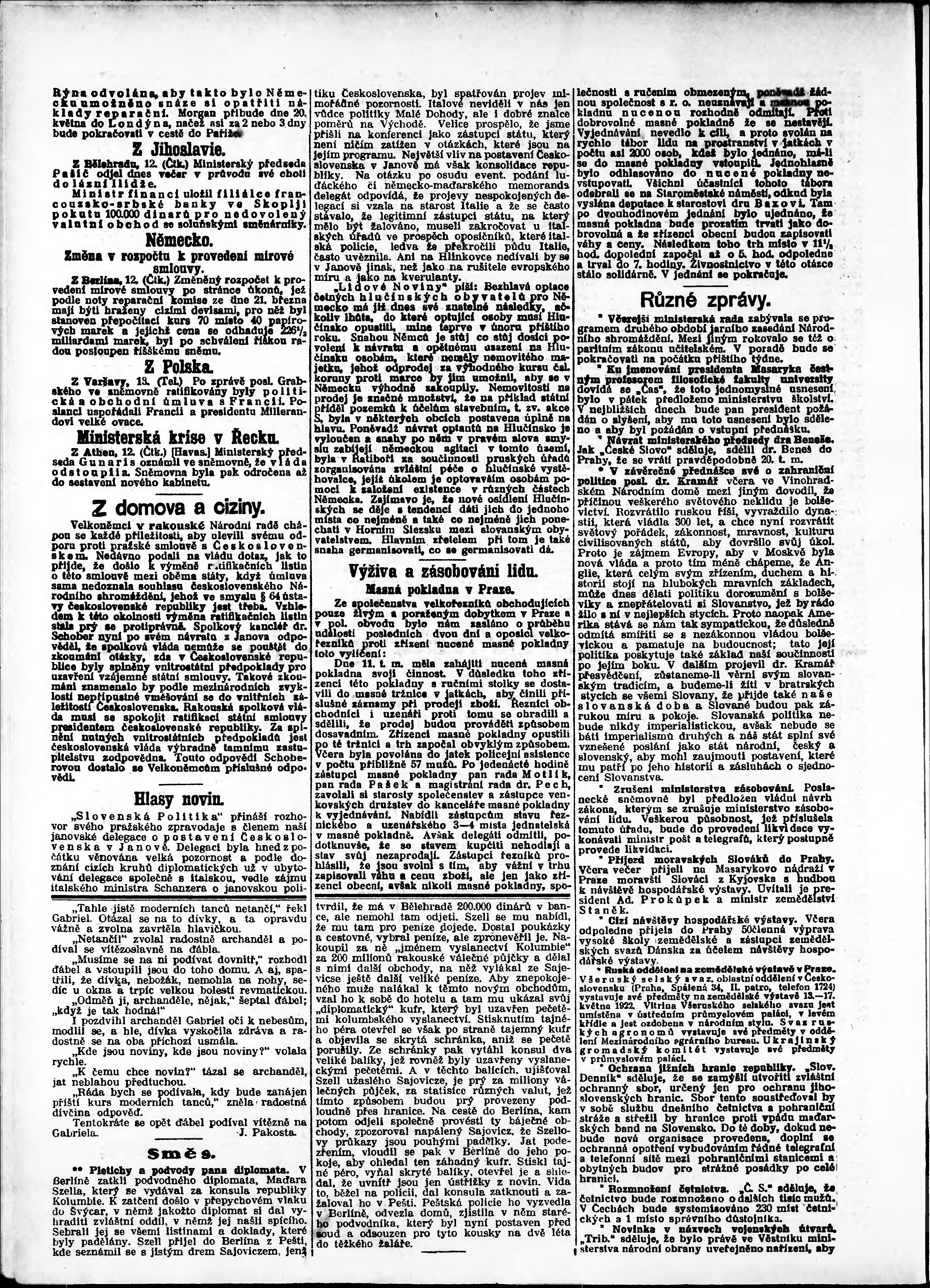 * Datum vydání výtisku: 13.5.1922 Číslo výtisku: 130 Poznámky k výtisku: odpolední vydání;