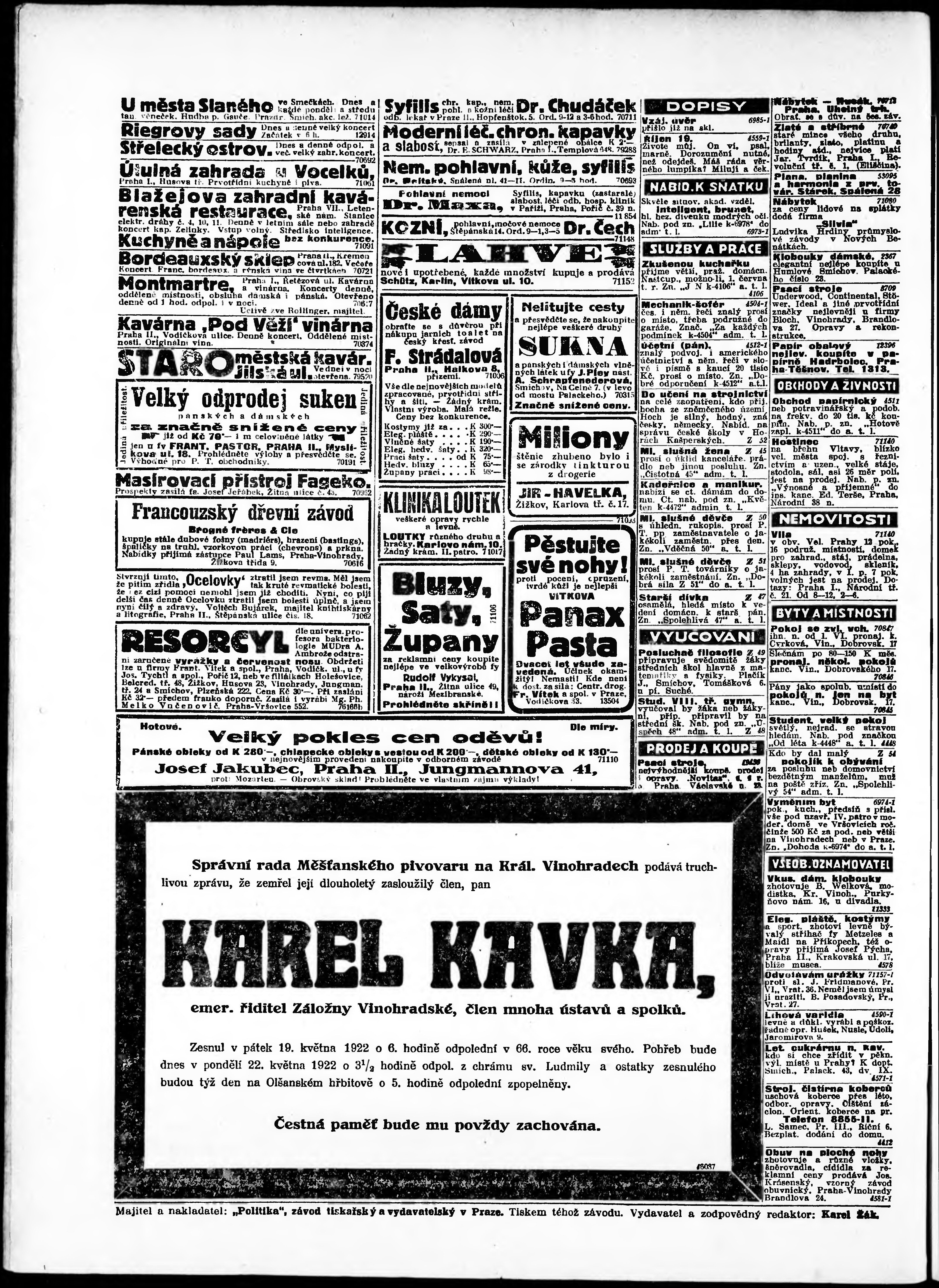 * Datum vydání výtisku: 22.5.1922 Číslo výtisku: 138 Poznámky k výtisku: odpolední vydání;