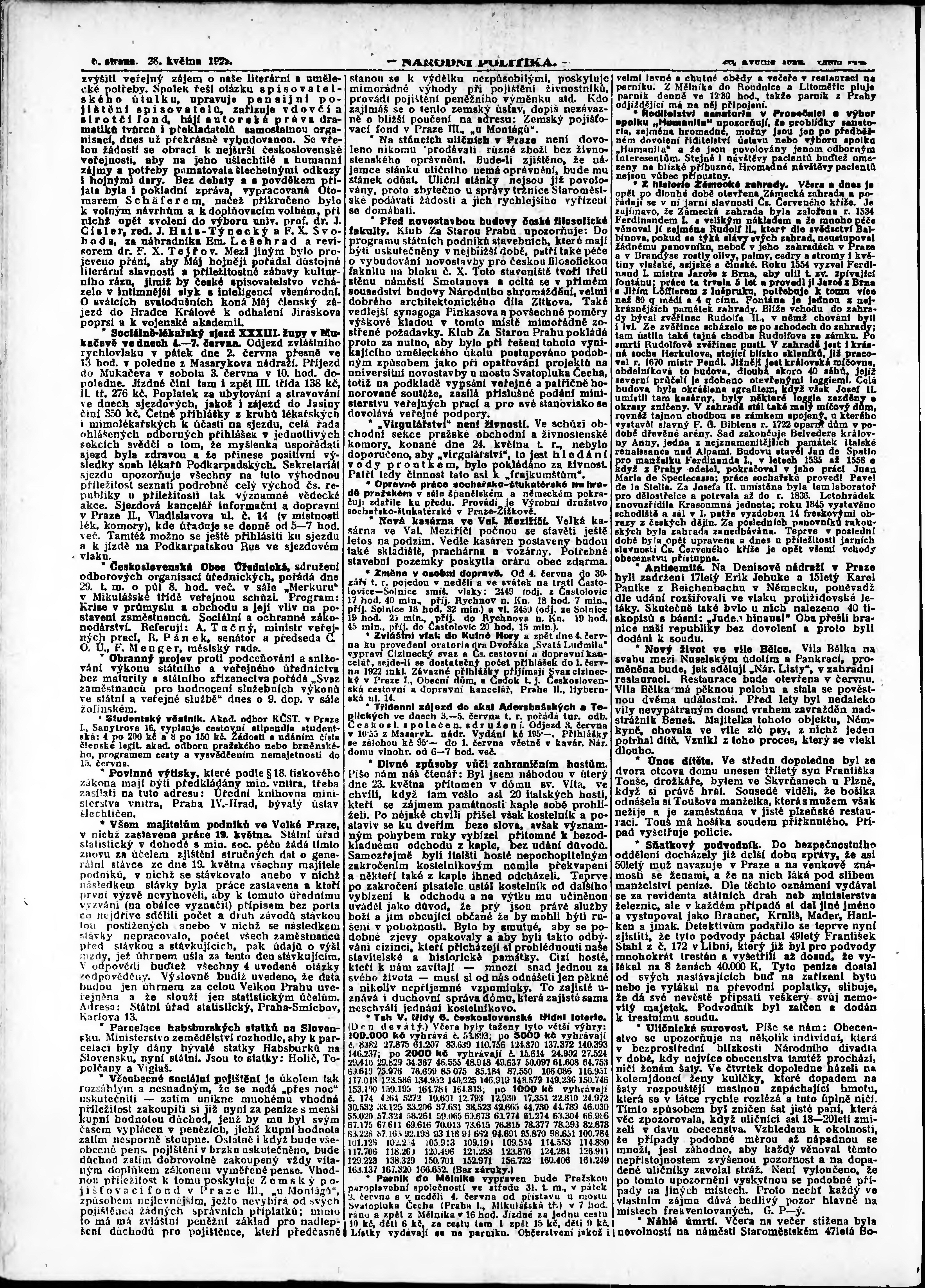 * Datum vydání výtisku: 28.5.1922 Číslo výtisku: 144 Poznámky k výtisku: ranní vydání;