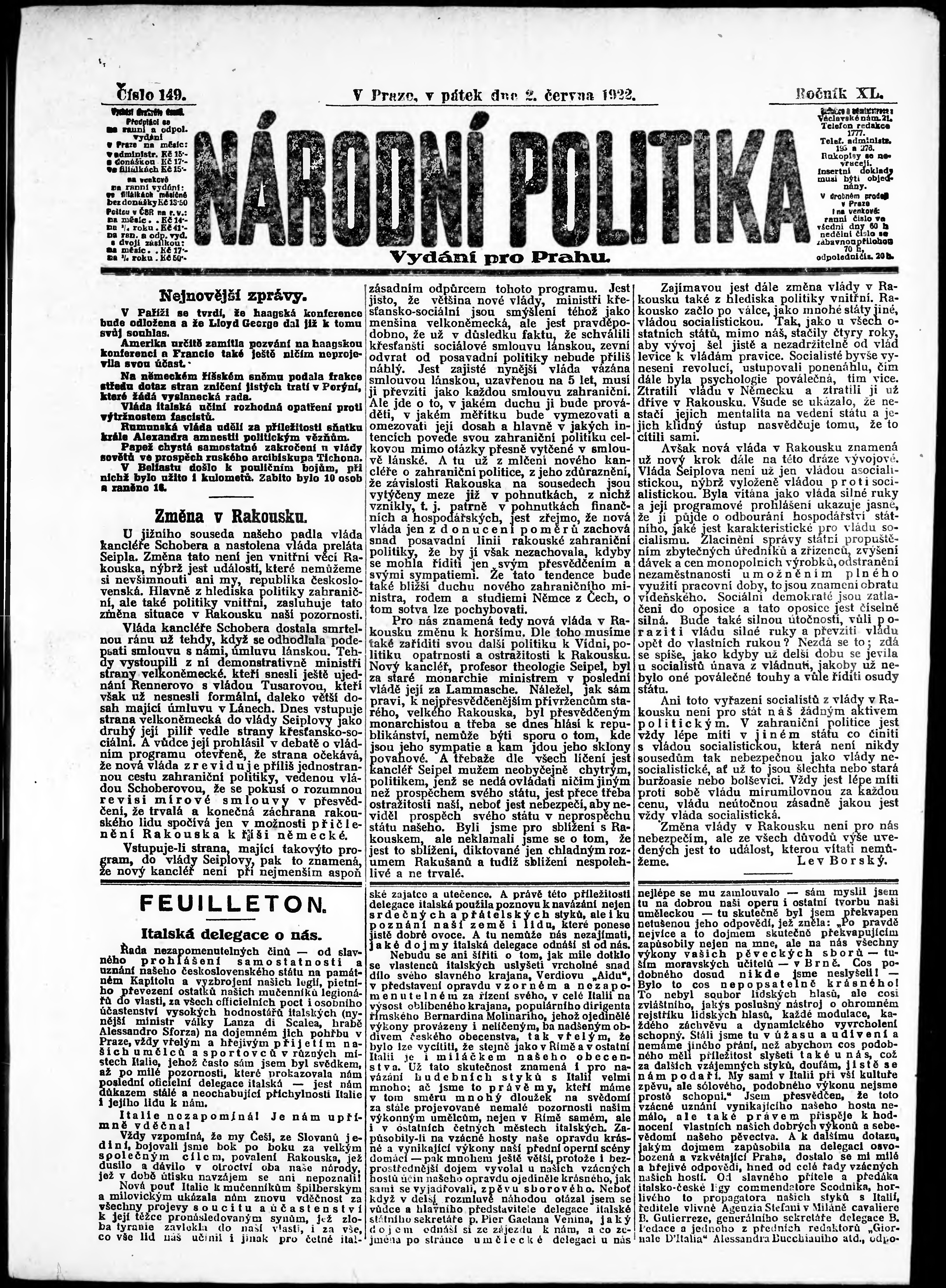 ranní vydání; vydání pro Prahu;