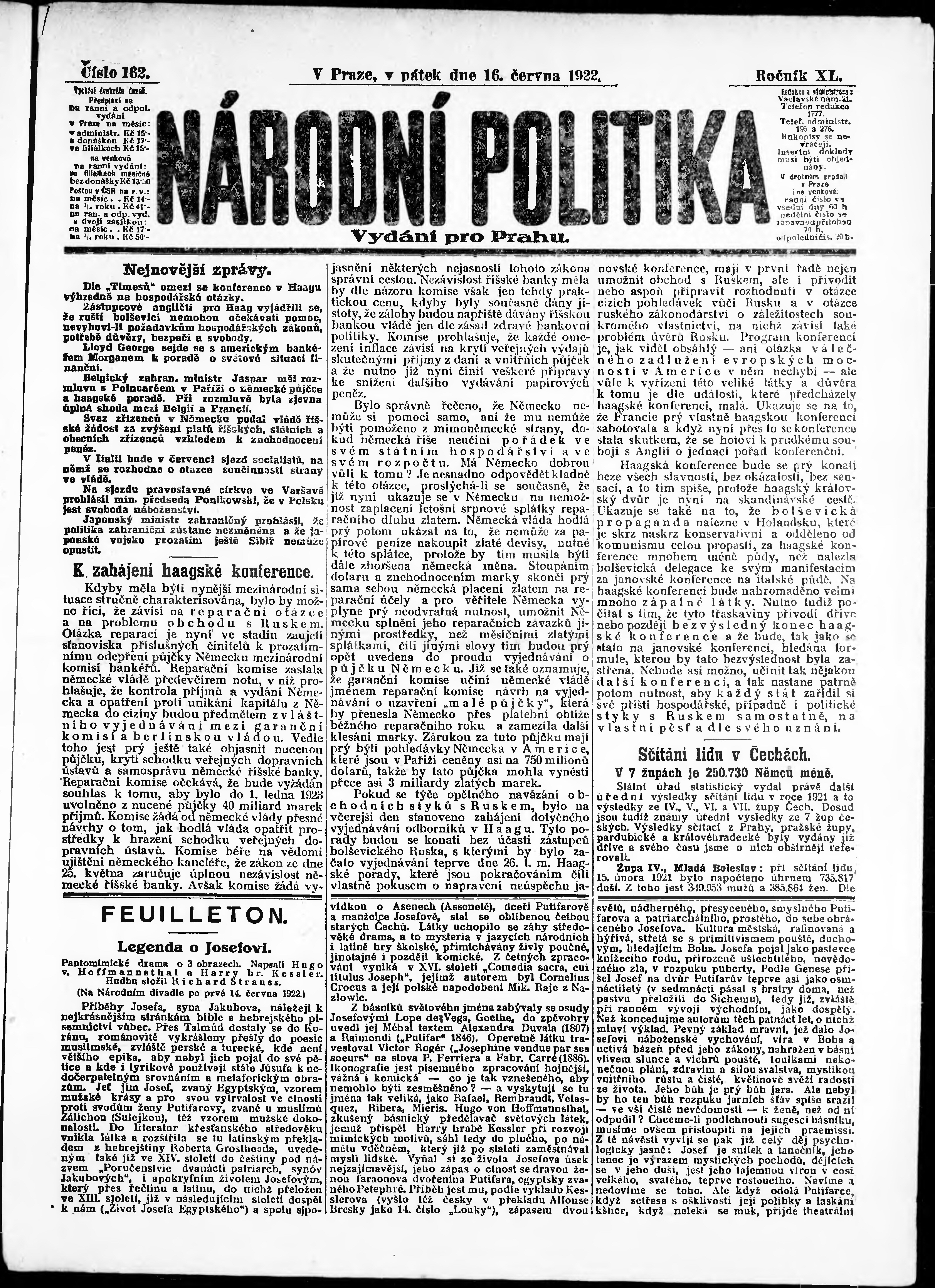 ranní vydání; vydání pro Prahu;
