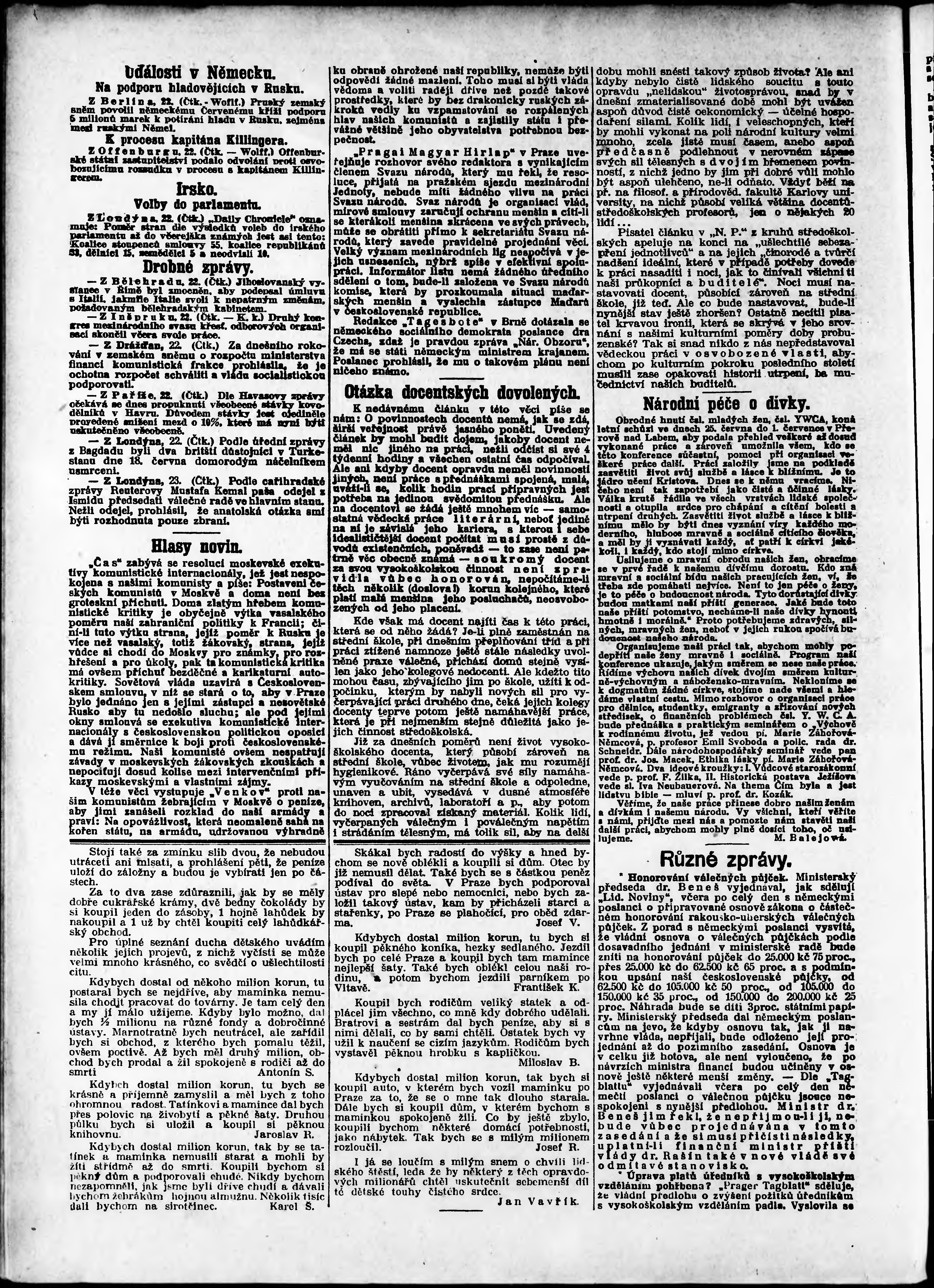 * Datum vydání výtisku: 23.6.1922 Číslo výtisku: 169 Poznámky k výtisku: odpolední vydání;