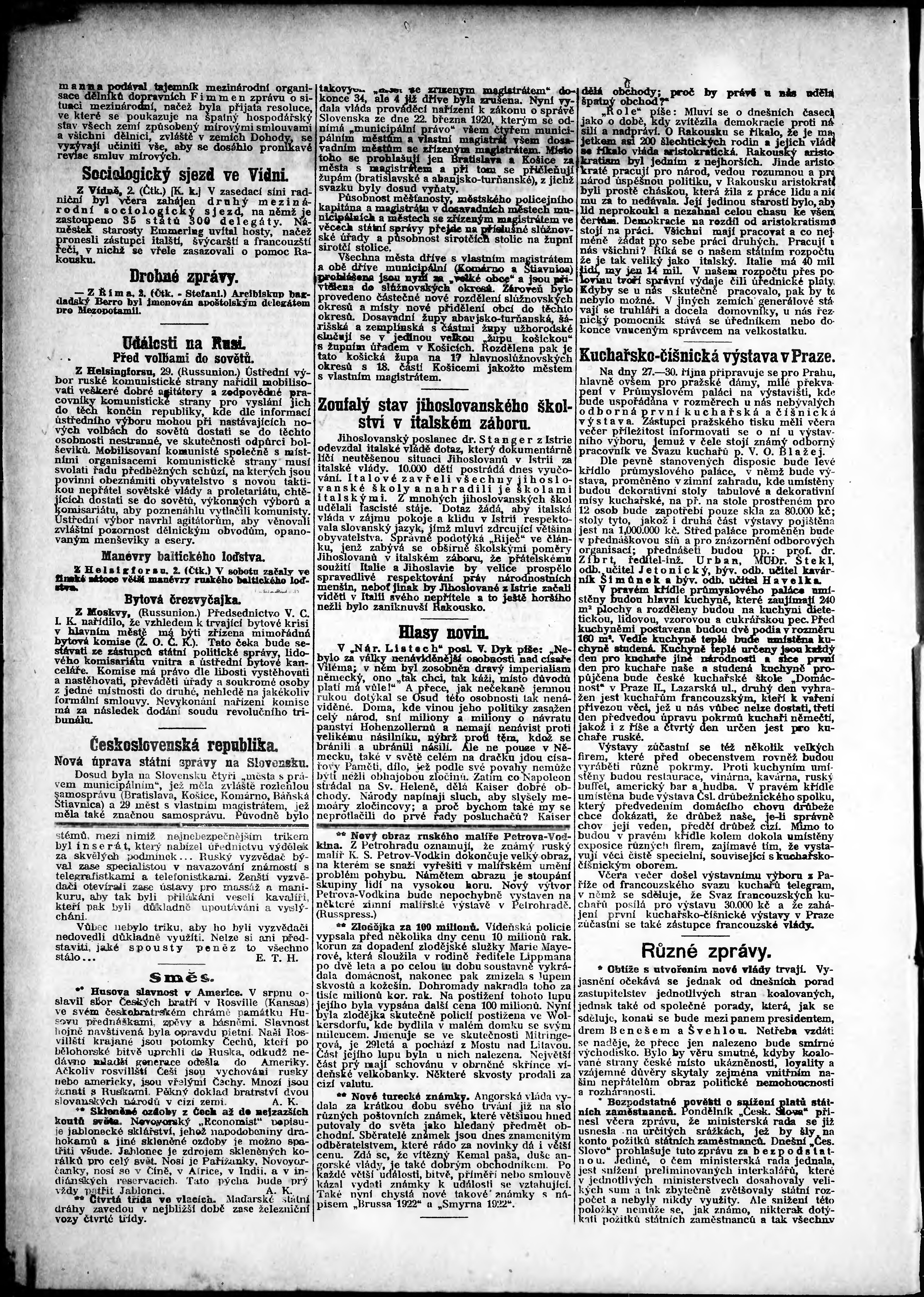 * Datum vydání výtisku: 3.10.1922 Číslo výtisku: 271 Poznámky k výtisku: odpolední vydání;
