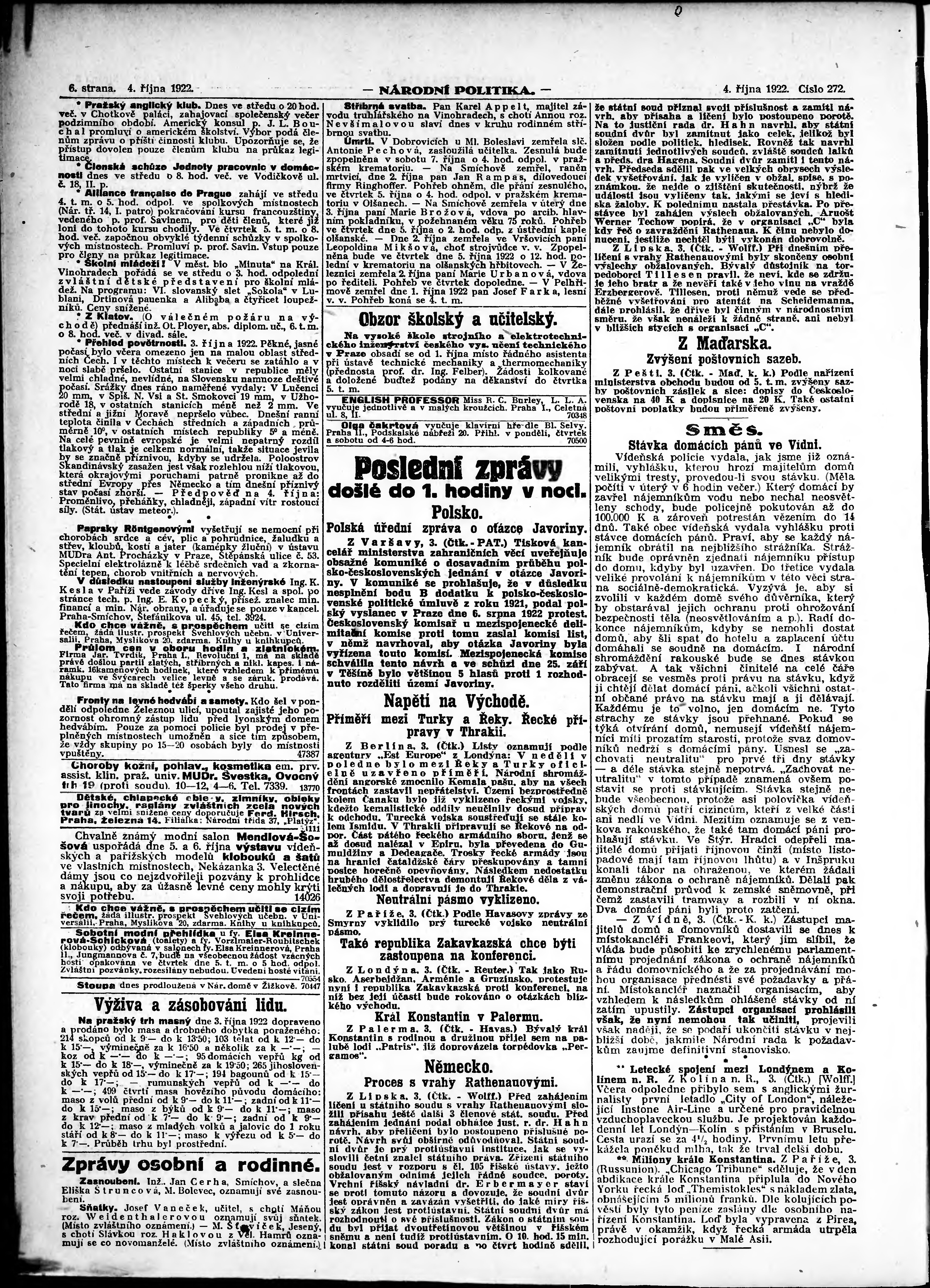 ranní vydání; vydání pro Prahu;