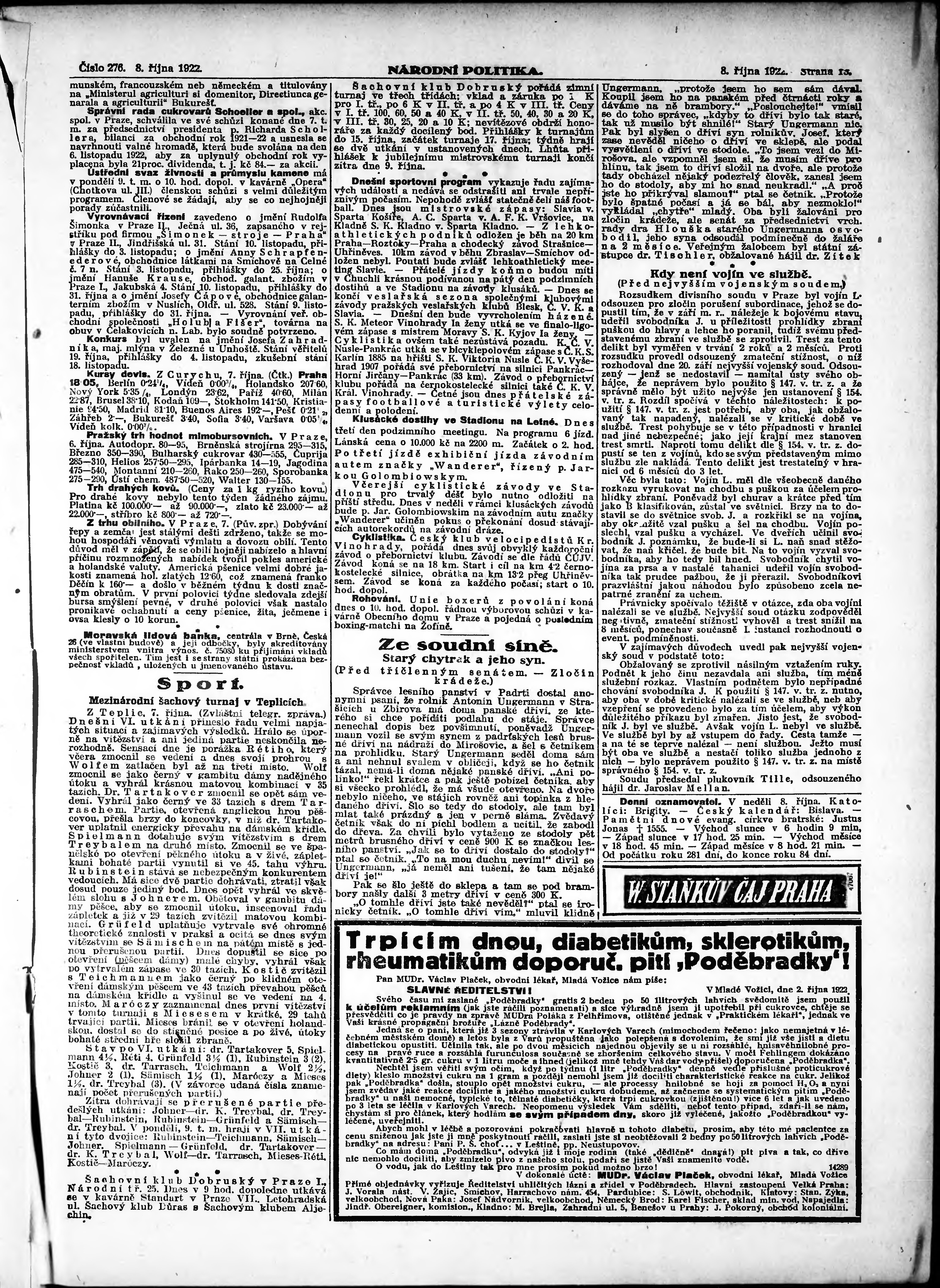 * Datum vydání výtisku: 8.10.1922 Číslo výtisku: 276 Poznámky k výtisku: ranní vydání;
