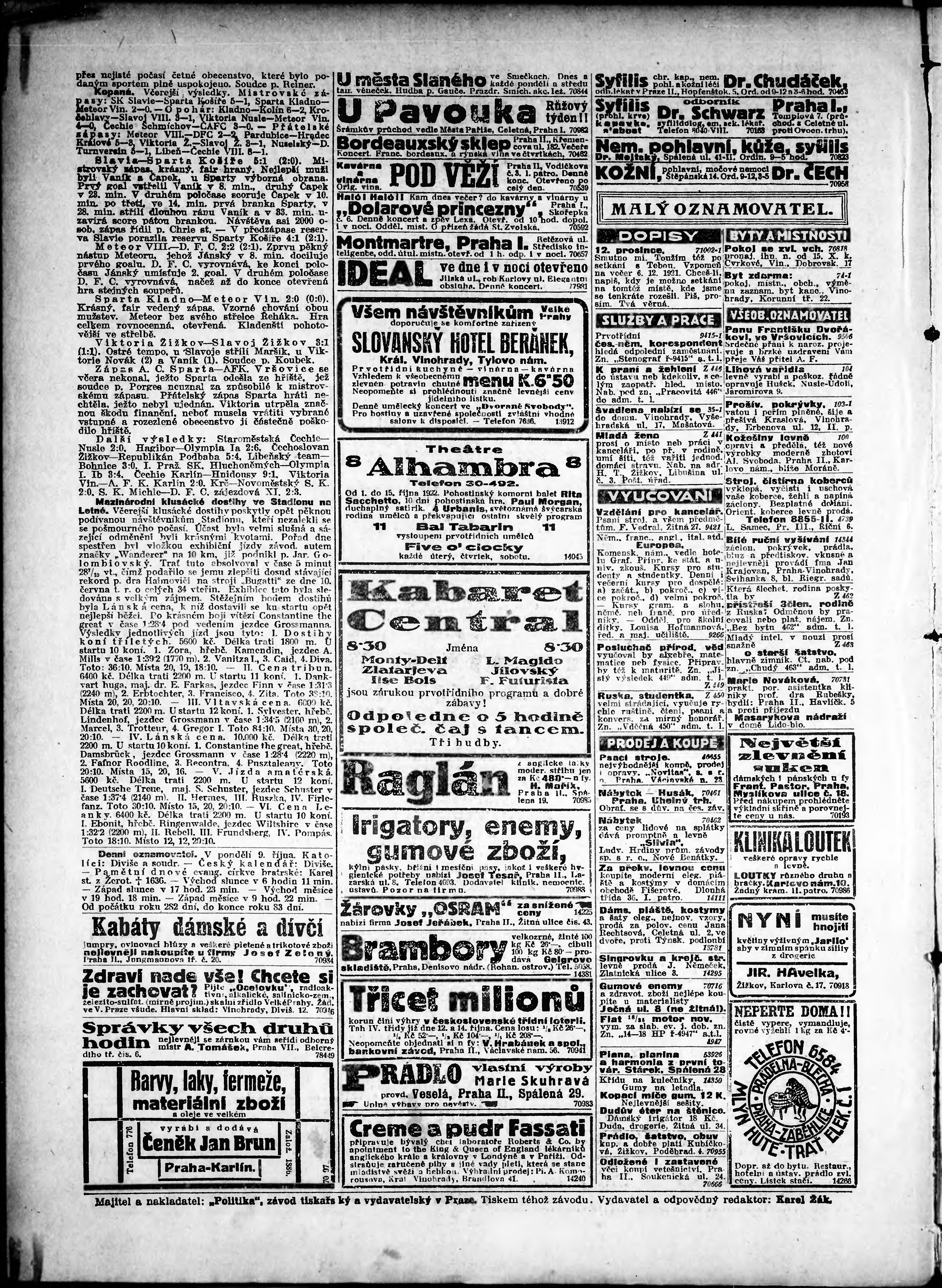 * Datum vydání výtisku: 9.10.1922 Číslo výtisku: 277 Poznámky k výtisku: odpolední vydání;
