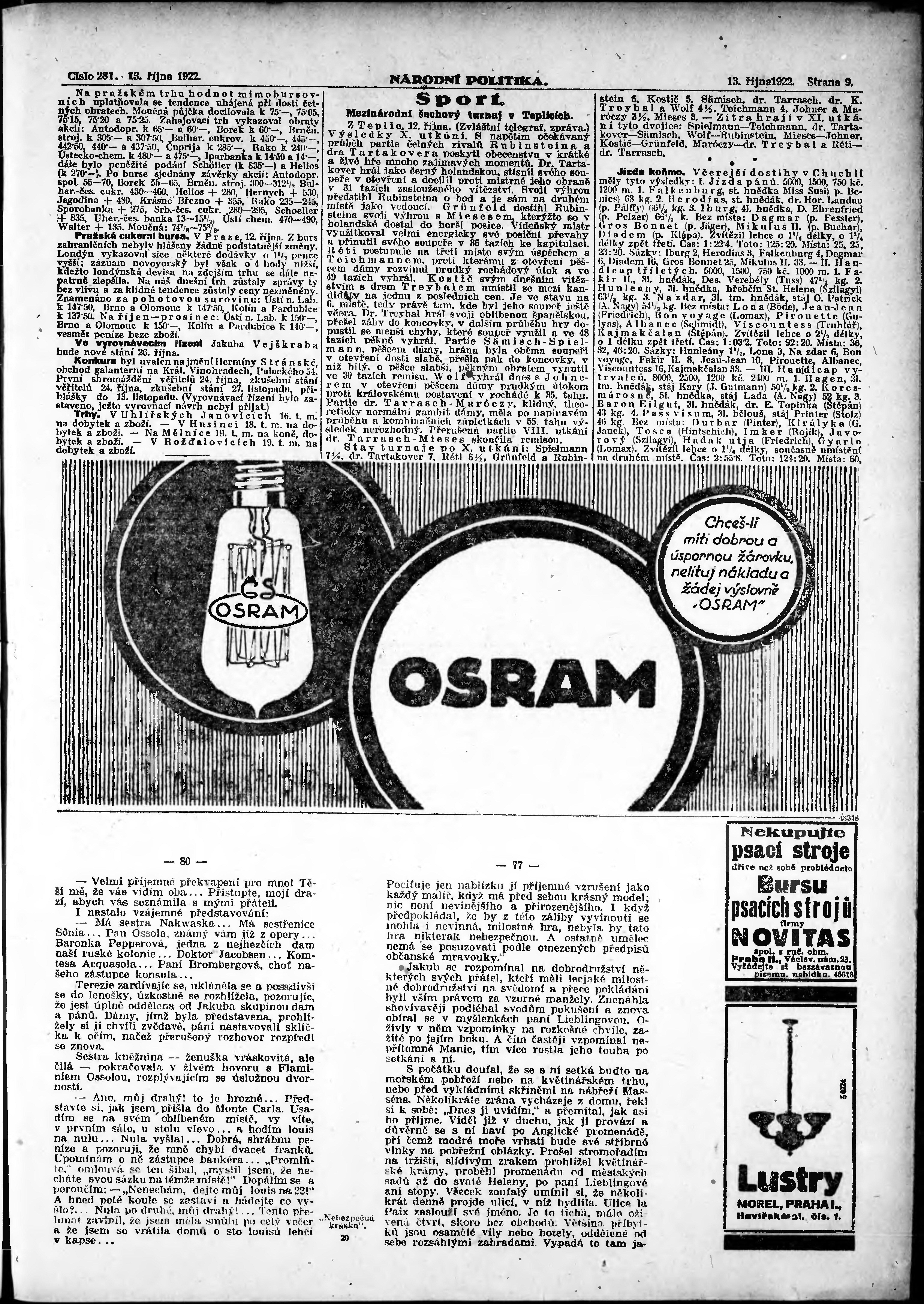 * Datum vydání výtisku: 13.10.1922 Číslo výtisku: 281 Poznámky k výtisku: ranní vydání; vydání pro Prahu;