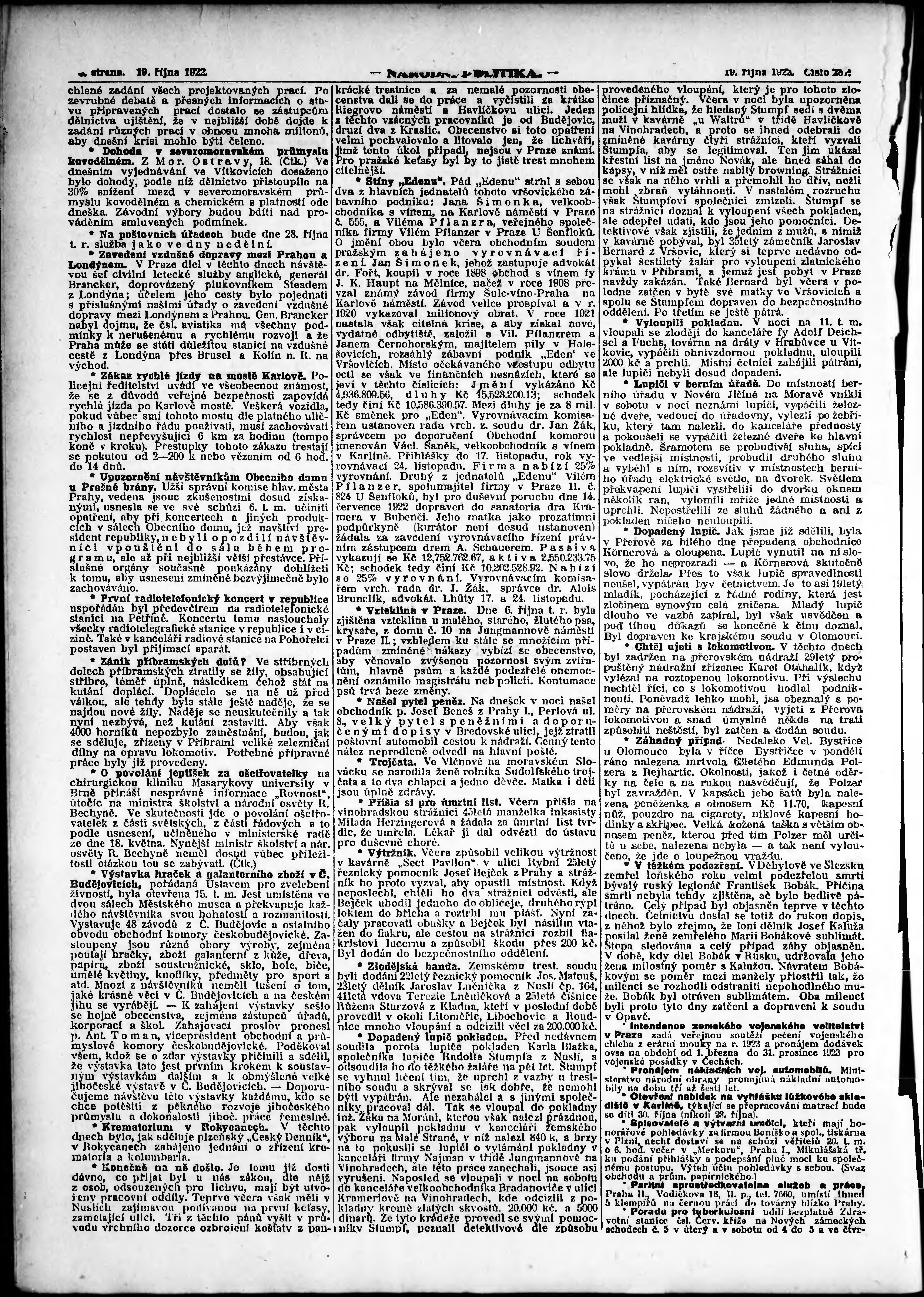 ranní vydání; vydání pro Prahu;