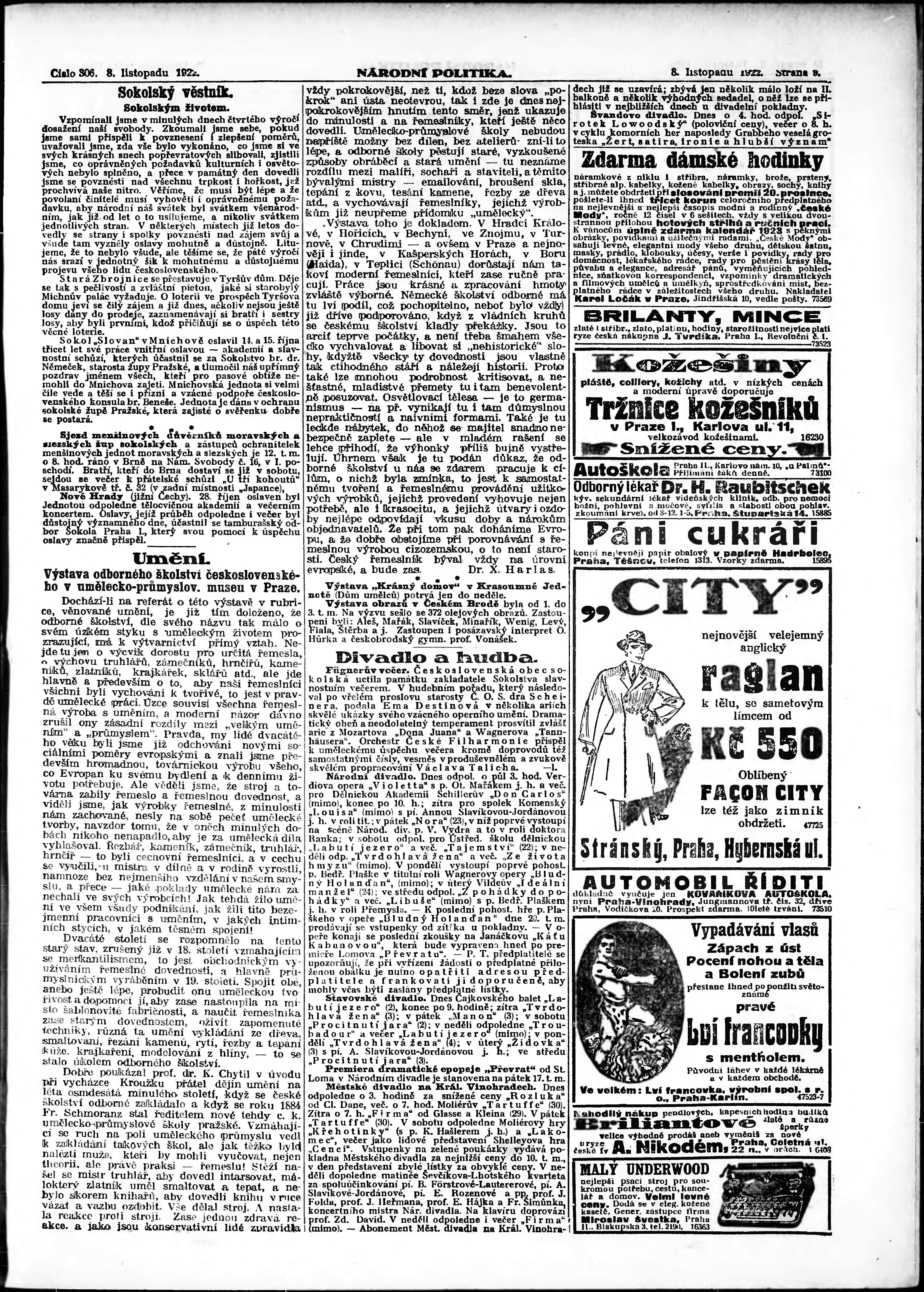 * Datum vydání výtisku: 8.11.1922 Číslo výtisku: 306 Poznámky k výtisku: ranní vydání; vydání pro Prahu;