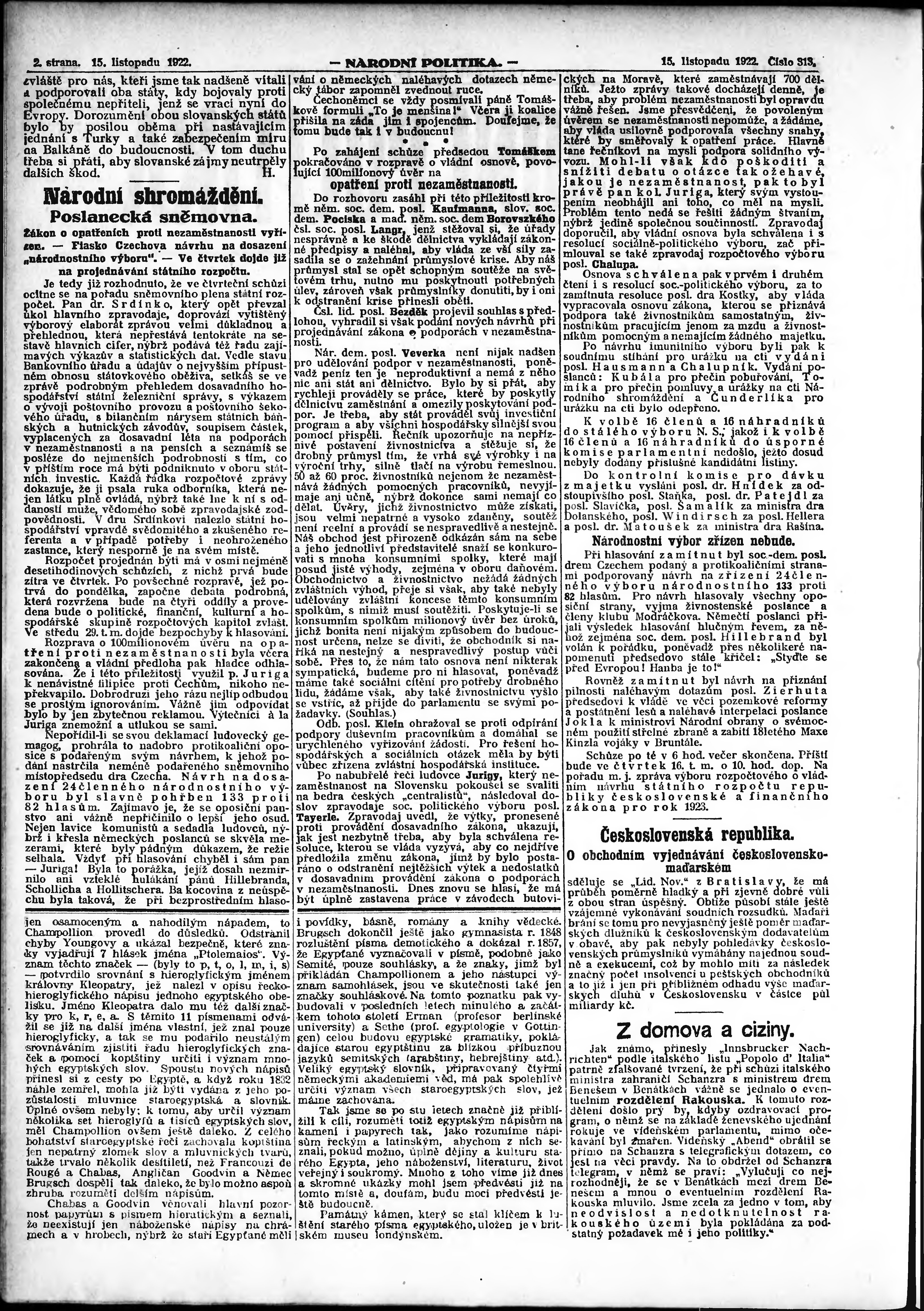 * Datum vydání výtisku: 15.11.1922 Číslo výtisku: 313 Poznámky k výtisku: ranní vydání; vydání pro Prahu;