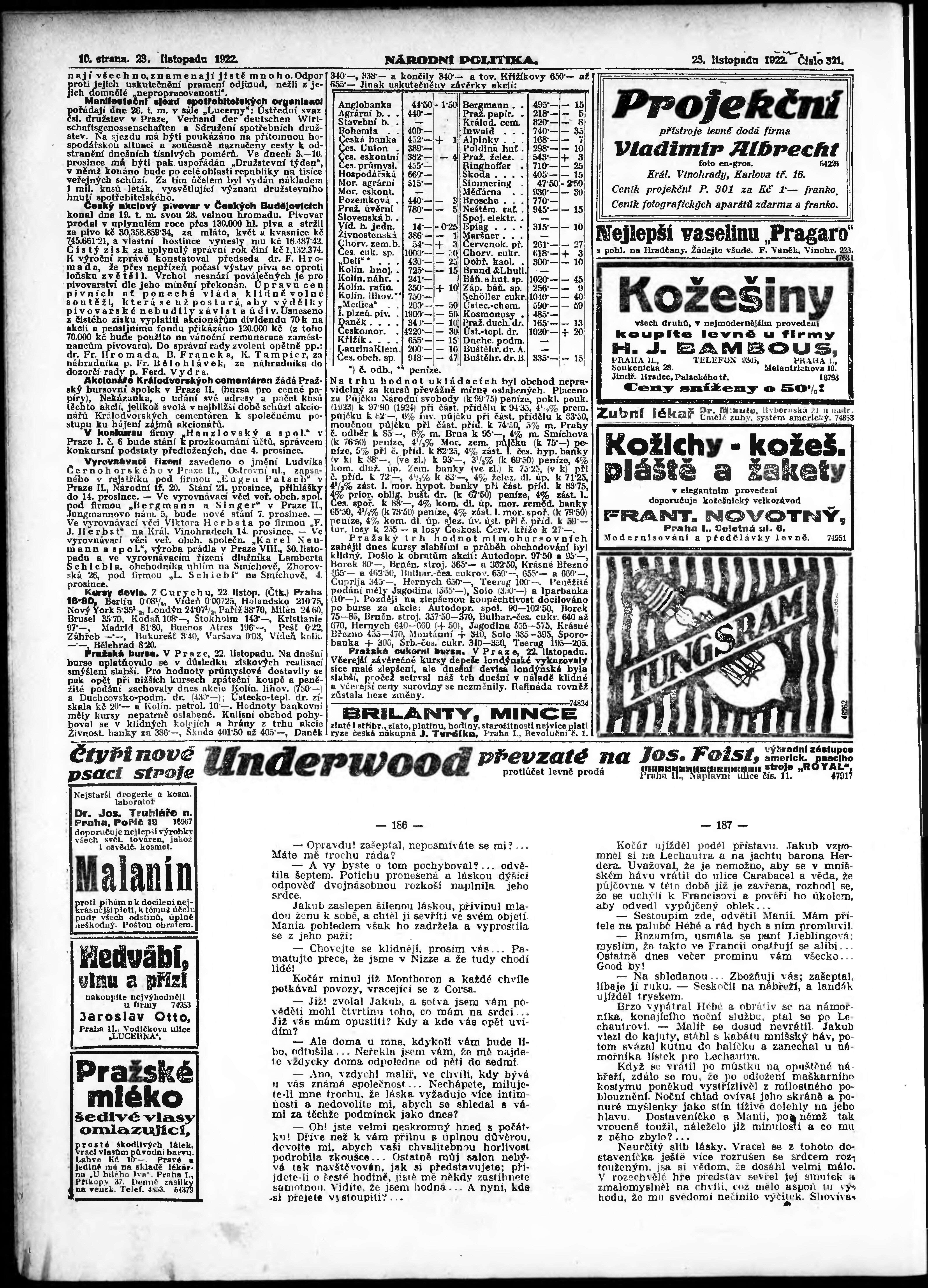 * Datum vydání výtisku: 23.11.1922 Číslo výtisku: 321 Poznámky k výtisku: ranní vydání; vydání pro Prahu;