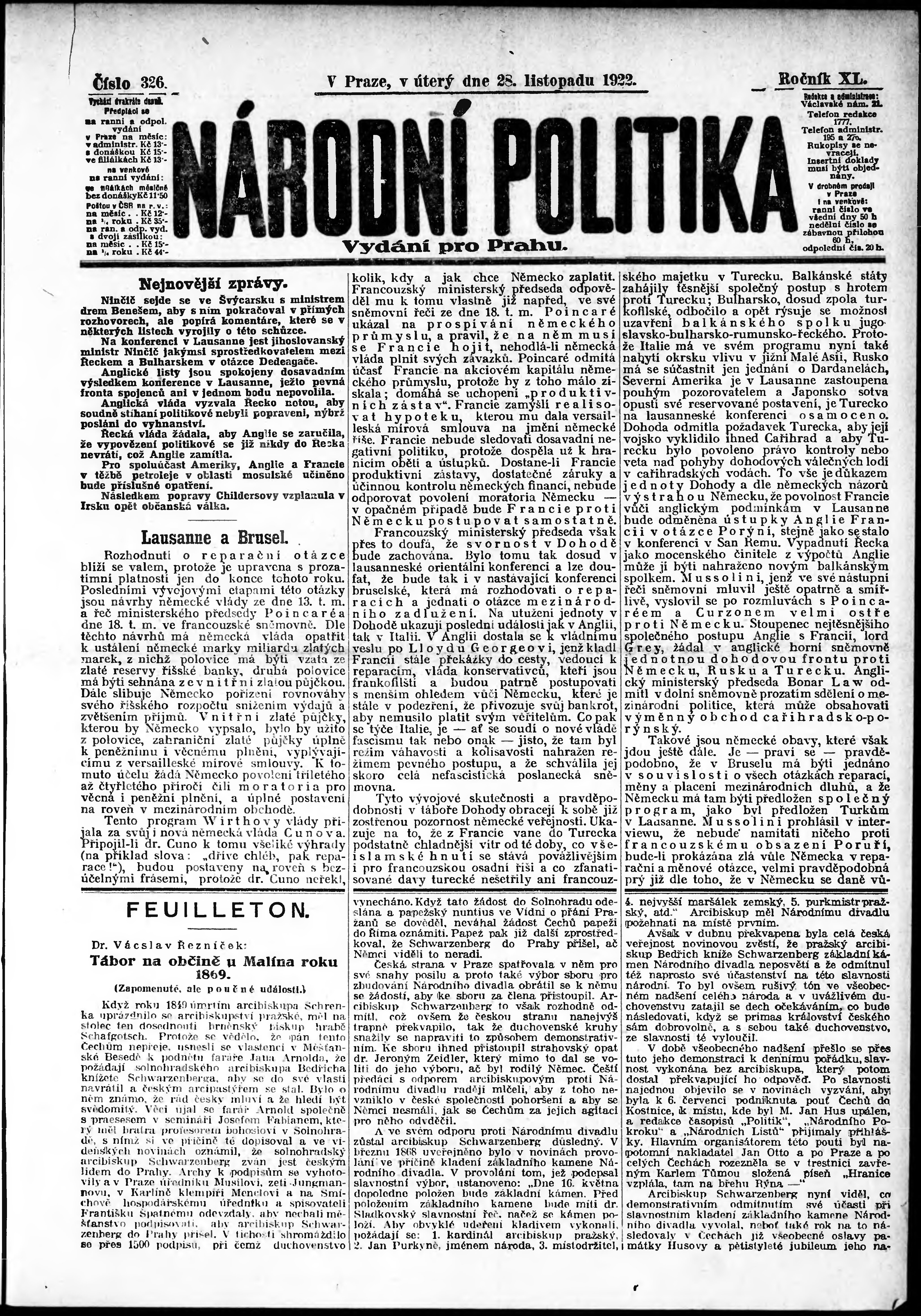 ranní vydání; vydání pro Prahu;