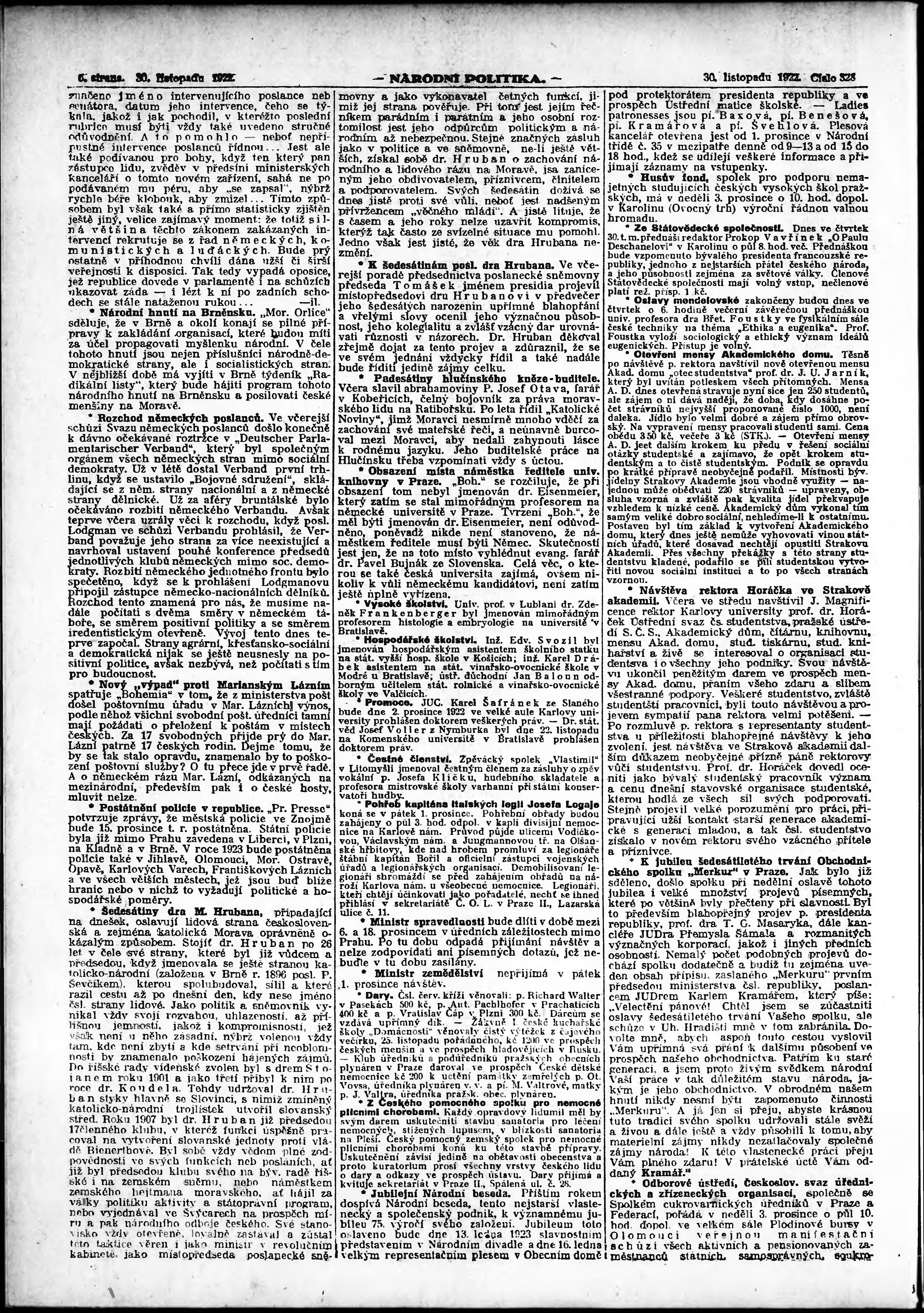 * Datum vydání výtisku: 30.11.1922 Číslo výtisku: 328 Poznámky k výtisku: ranní vydání; vydání pro Prahu;