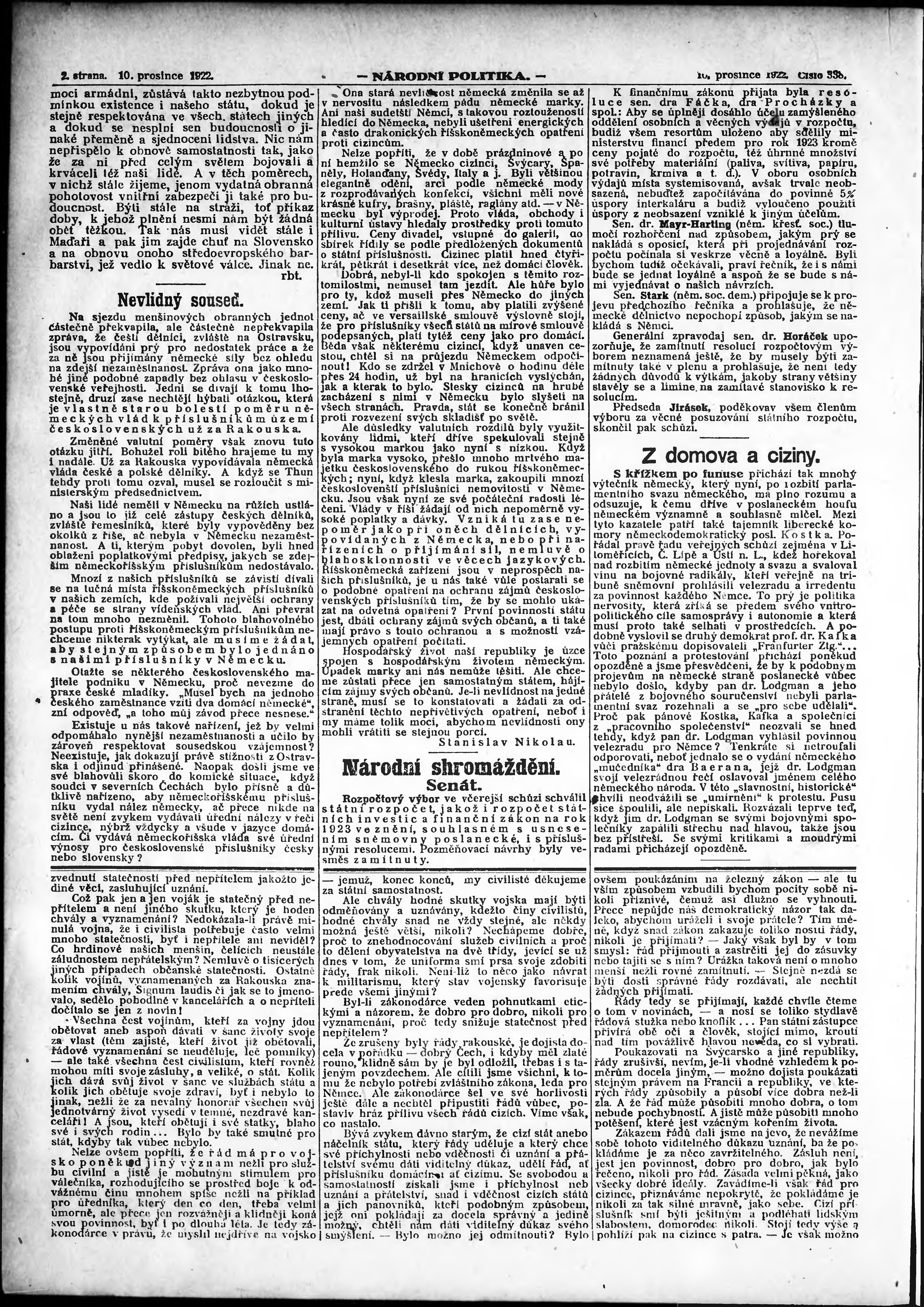 * Datum vydání výtisku: 10.12.1922 Číslo výtisku: 338 Poznámky k výtisku: ranní vydání;