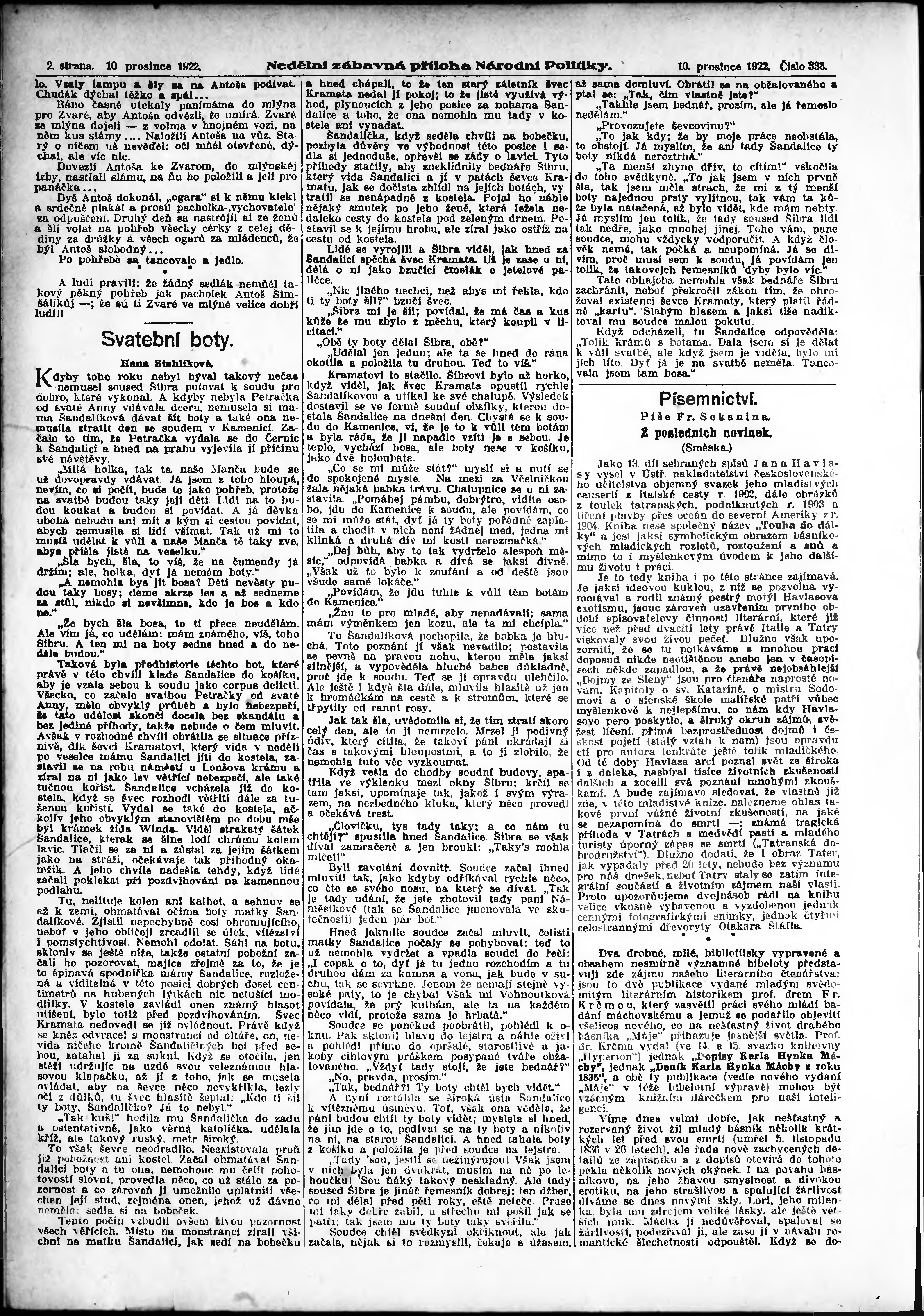 * Datum vydání výtisku: 10.12.1922 Číslo výtisku: 338 Typ výtisku: příloha