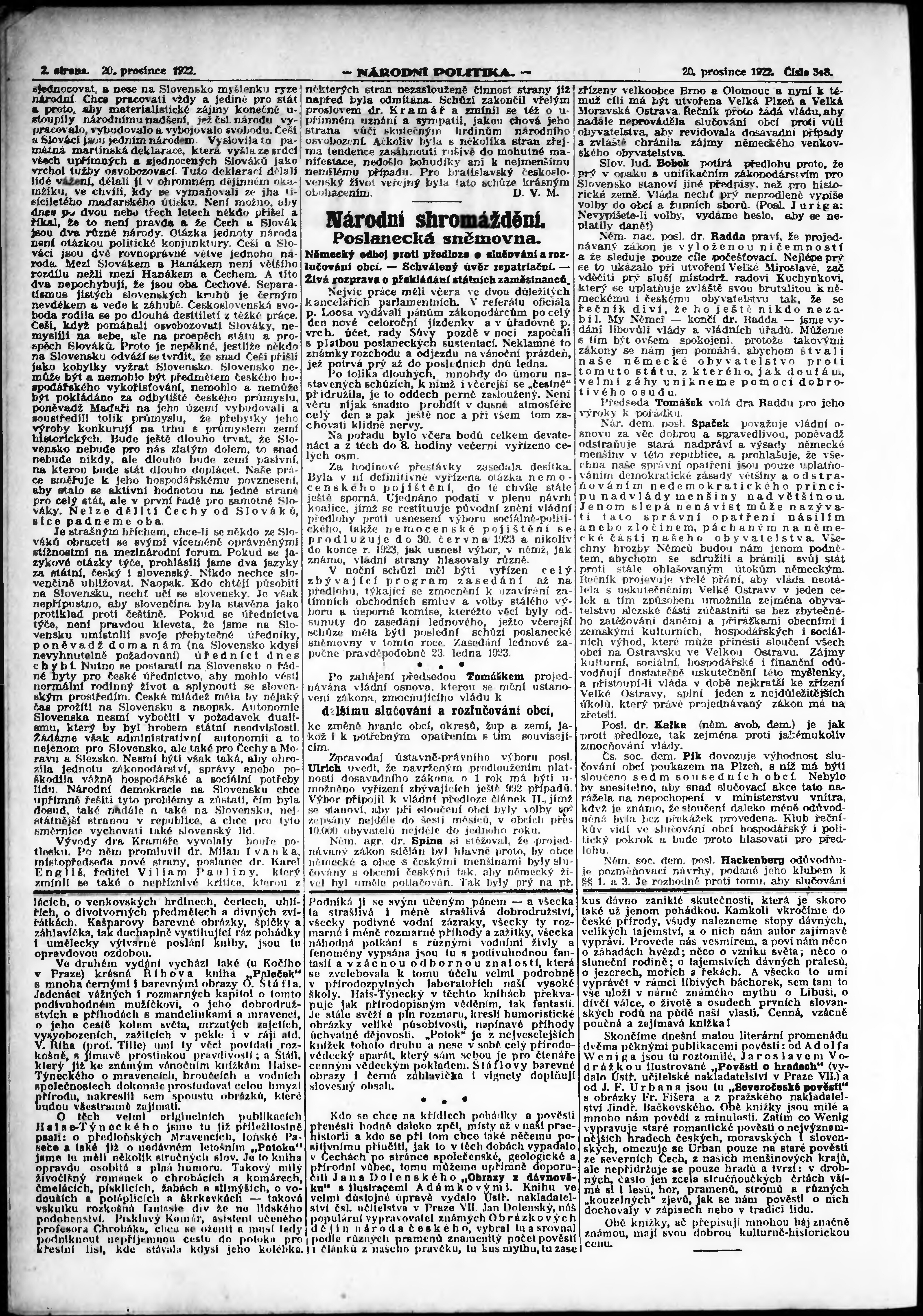 * Datum vydání výtisku: 20.12.1922 Číslo výtisku: 348 Poznámky k výtisku: ranní vydání; vydání pro Prahu;
